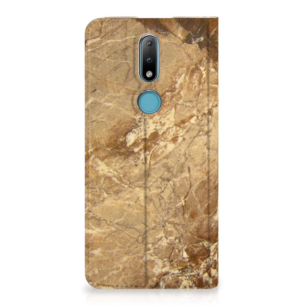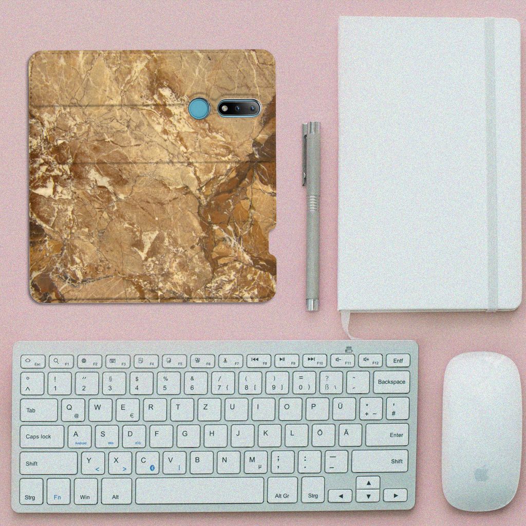 Dit design hoesje met Marmer in lichtbruine kleur is voor de artistiekelingen onder ons. De Grieken en Romeinen wisten het marmer al te waarderen door het in de bouw toe te passen. Naast het witte marmer zijn de diverse soorten marmer in een gevarieerde kleurensamenstelling te krijgen. We hebben verschillende mooie kleuren op design hoesjes gezet, zoals in dit geval het lichtbruine marmer. Dit is een Nokia 2.4 Standcase met marmer in lichtbruine kleur. Het marmer wordt bedrukt op alle zijden van een stand case, die beschikt over 1 vakje voor een pasje en een magnetische sluiting aan de binnenzijde. Verder heeft de hoes een houder van TPU. Door de rijkdom aan kleuren en varianties in afwerking kunnen ontwerpers met marmer schitterende architectonische projecten realiseren. Wij hebben hetzelfde gedaan en onze ontwerper veel vrijheid geboden. Het resultaat zie je terug in deze stand case met lichtbruin marmer, dat de ideale bescherming voor jouw smartphone is.