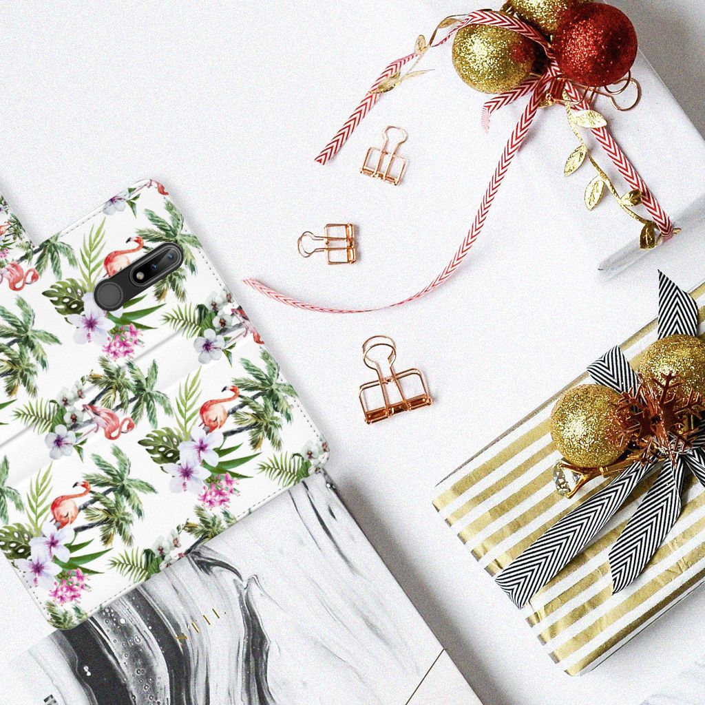 Nokia 2.4 Telefoonhoesje met ruimte voor 3 pasjes Flamingo Palms