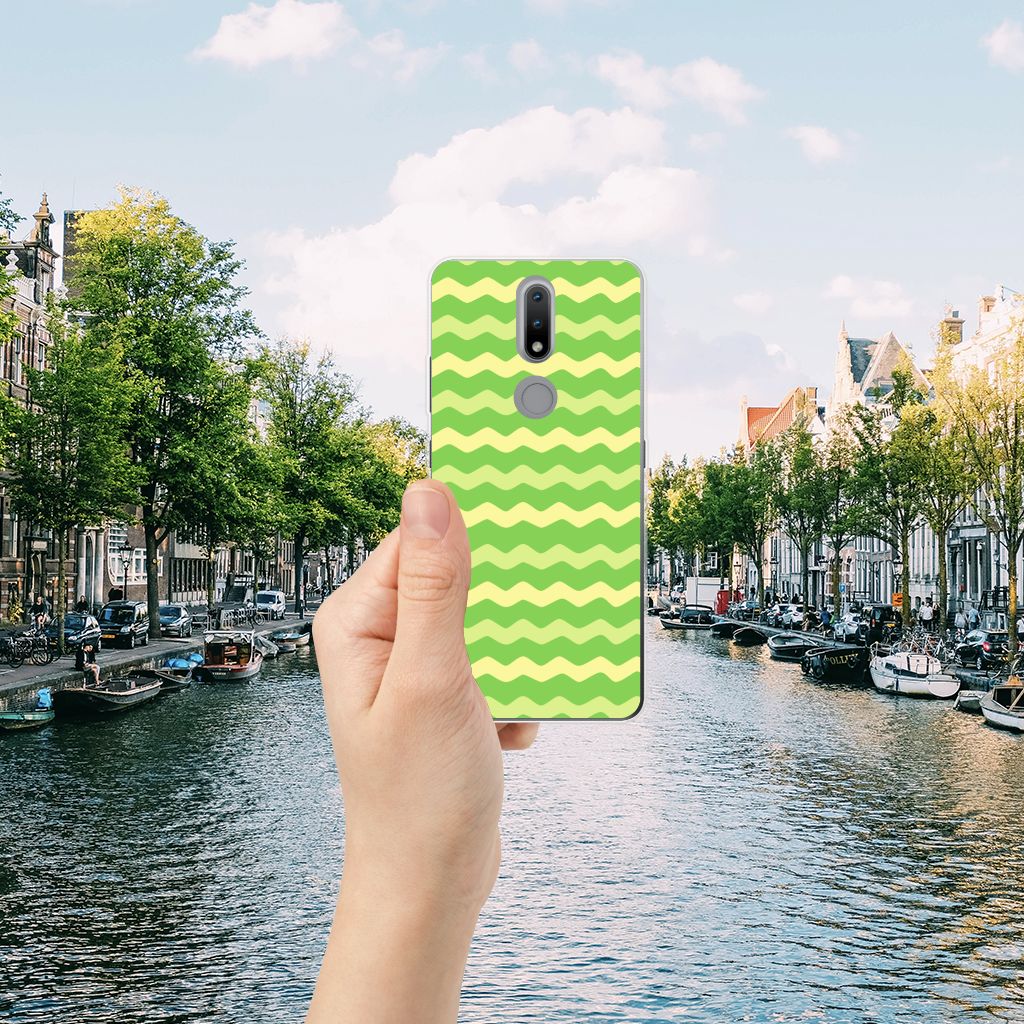Dit groene design hoesje met groene golven is speciaal ontworpen voor jouw telefoon. We hebben een vleugje geel toegevoegd, zodat er sprake is van variatie. Dit Waves Green hoesje ziet er flitsend uit. Dat kan ook niet anders, als je weet dat we veel energie steken in het bedenken van originele designs. Een heel strak Nokia 2.4 TPU bumper, met zeer veel opties. Past dit groene design hoesje met golven goed bij jou? Bestel het dan vandaag nog, tegen zeer lage kosten. Het design staat op een TPU case. Dit hoesje wordt alleen aan de bovenkant bedrukt en is zeer flexibel. De randen van het hoesje met groene golven blijven transparant en worden niet bedrukt. Met dit hoesje past jouw telefoon altijd in je broekzak.