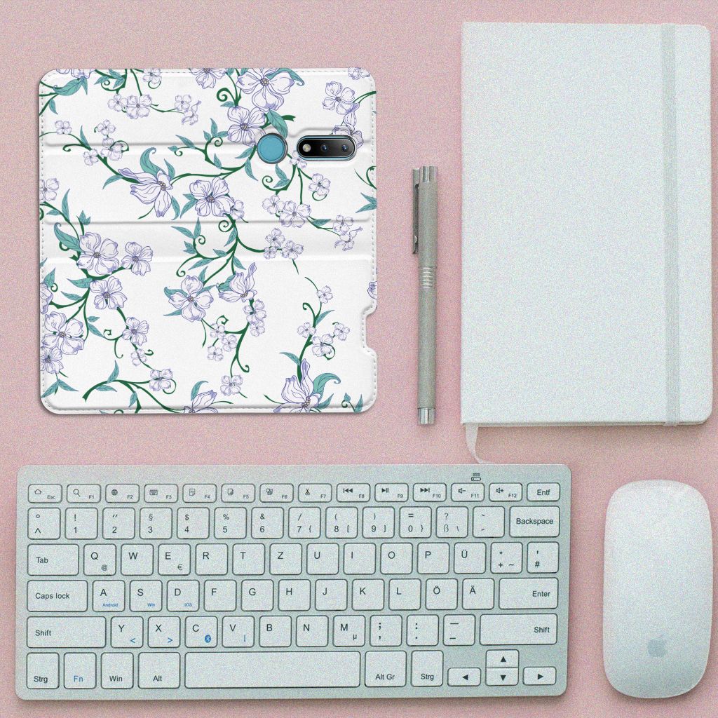 Witte bloemen staan voor puurheid, frisheid, helderheid en eenvoud. Geen wonder dus dat ze al heel lang populair zijn en ook prachtig staan op een telefoonhoesje. Niet iedereen houdt immers van kleurrijke designs. Toch graag bloemetjes op je Smart Cover maar zonder bonte kleuren? Dan is dit hoesje voor de Nokia 2.4 perfect voor jou. Dit populaire smartphonehoesje heeft één vakje voor een pasje of briefgeld en is aan alle zijden bedrukt. Met de standcase zet je je telefoon gemakkelijk neer, zodat je je handen vrij hebt als je bijvoorbeeld een video wilt kijken. De binnenkant van de standcase is van grijs PU-leer. Dat is fijn, omdat je daardoor niet snel vlekken ziet op je hoesje.
