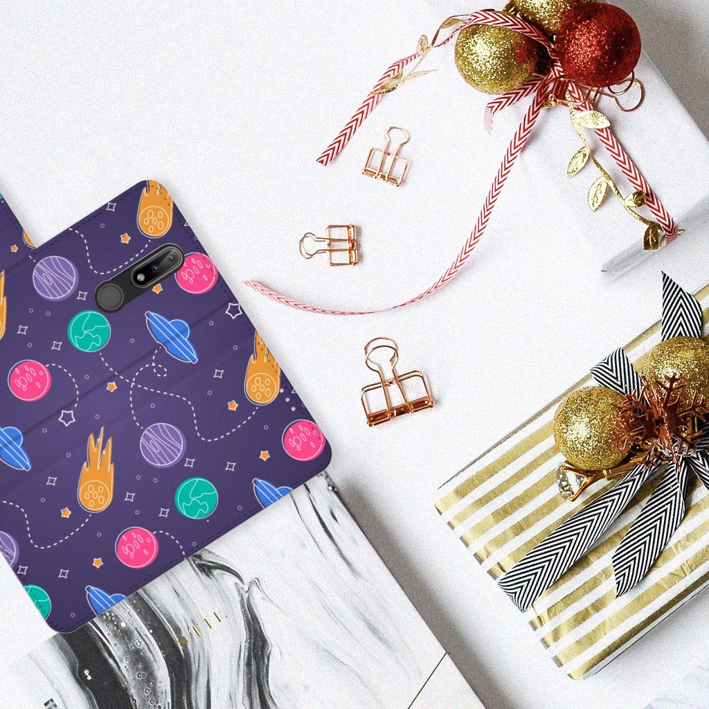 Ben je een beetje geïnteresseerd in buitenaards leven? Dan kan je wel eens enthousiast raken van dit Nokia 2.4 Wallet Case met Pasjes met Space print. Dus mensen die van science fiction houden zullen deze case ongetwijfeld mooi vinden. Er zijn verschillende planeten en vliegende schotels te ontdekken in dit design hoesje. Dit kunstwerkje is voor heel weinig geld te bestellen op onze website. Je krijgt er maximale bescherming van je smartphone voor terug. Het boekhoesje beschermt jouw telefoon aan alle zijden en beschikt over verschillende opbergvakjes voor pasjes en briefgeld. De case sluit perfect af met het lipje aan de buitenkant. Voor een deel komen de vliegende schotels ook terug op het magnetische lipje. De houder aan de binnenzijde is van TPU. Je zult ontdekken dat dit hele stevige telefoonhoesje een heel goede bescherming biedt tegen alle vormen van schade. Met dit hoesje hoef je niet bang te zijn dat er krassen op je design komen of scheuren in je scherm.