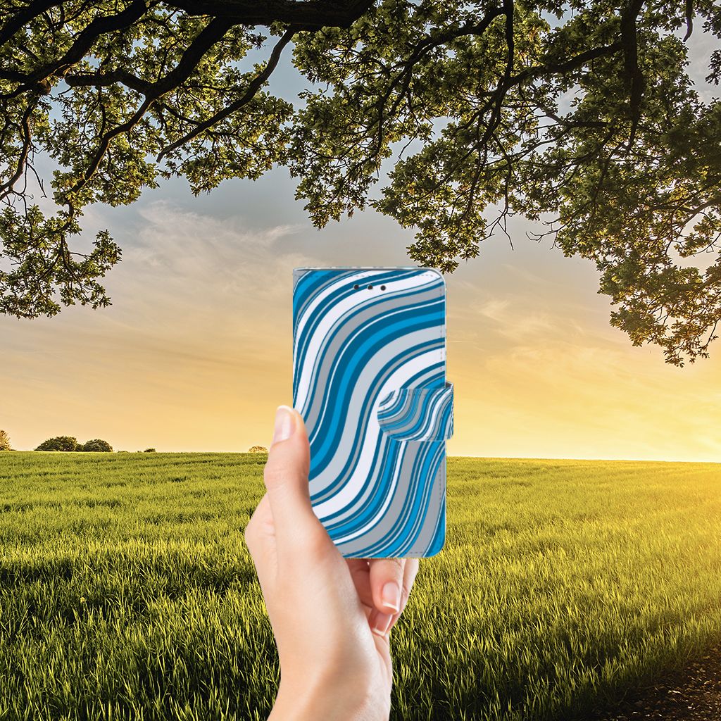 Zeer cool, dit hoesje met vooral blauwe kleuren, die in een golvende beweging jouw telefoon van een mooie uitstraling voorzien. Tijdens een zonnige vakantie aan zee is jouw smartphone perfect beschermd met dit telefoonhoesje. Het design Waves Blue van dit smartphone hoesje doet lichtjes denken aan een lolly, waarmee je een klein kind zeer blij maakt. Jouw Nokia 2 zal er ook zeer vrolijk uitzien samen met dit design hoesje. De witte en grijze kleuren staan in mooi contrast met het blauw, waardoor de uitstraling van deze accessoire zeer mooi is. Ook voor andere kleuren kun je natuurlijk uitstekend terecht in ons assortiment. Het design staat op een boekhoesje. Dit Telefoon Hoesje beschermt jouw telefoon aan alle zijden en beschikt over verschillende opbergvakjes voor pasjes en briefgeld. De case sluit perfect af met het lipje aan de buitenkant. De houder aan de binnenzijde is van TPU.