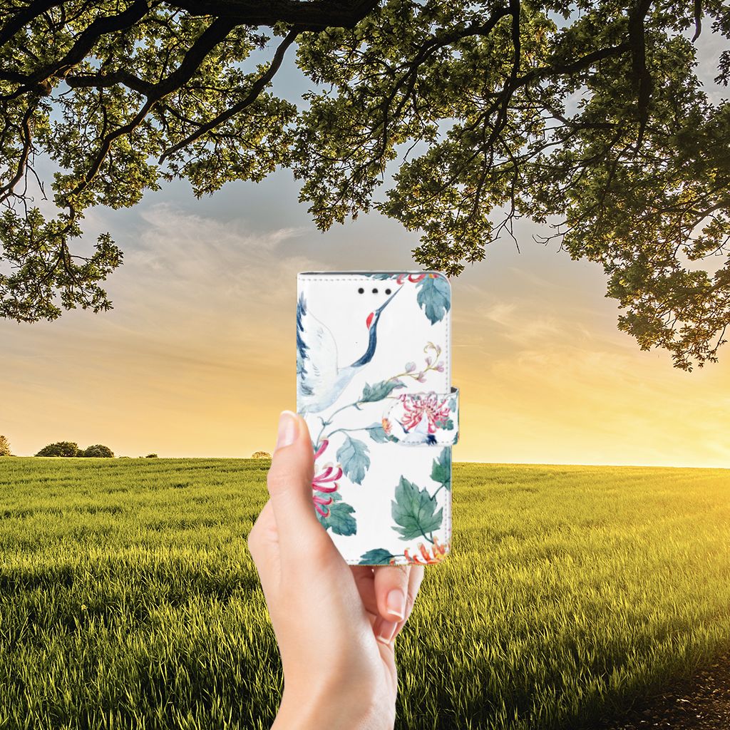 Nokia 2 Telefoonhoesje sluit met magnetische lipje Bird Flowers