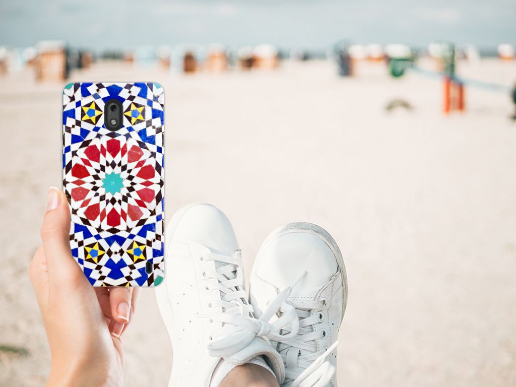 Aan design hoesjes met kunstvormen geen gebrek in onze uitgebreide collectie. Wat dacht je van dit design hoesje met Mozaïek . Dit is een kunstvorm waarbij een grote afbeelding wordt gemaakt uit een groot aantal kleine gekleurde steentjes (tesserae), die in een vloer of wand worden gemetseld. Deze gekleurde steentjes zie je terug op deze tpu case met design van mozaïek. Een tpu case is zeer flexibel. Een Nokia 2 TPU Siliconen Hoesje met print zorgt voor een bescherming van de achterzijde en zijkanten van je smartphone. Deze zijkanten worden niet bedrukt. De Grieken en Romeinen beheersten de kunst al. Op diverse plaatsen in Europa zijn mozaïeken teruggevonden die tot op de dag van vandaag goed bewaard zijn gebleven. Met een tpu hoesje met mozaïek blijft jouw telefoon in tact.