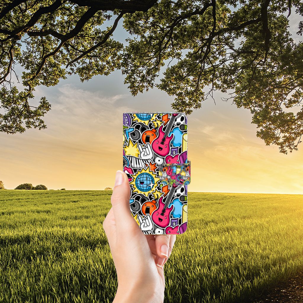 Ben jij opzoek naar een uniek hoesje wat jouw rebelse kant laat zien? Dan ben je hier aan het juiste adres. Deze Nokia 2 Wallet Case met Pasjes vol met gitaren, discoballen en meer is een waar spektakel om naar te kijken. Bovendien heb je als rocker ook een goed boekhoesje nodig. Tijdens al die concerten en festivals wil jouw telefoon nog weleens uit je zak vallen, wanneer deze dan in dit unieke hoesje zit dan is er niks aan de hand. Jouw telefoon zit veilig in dit boekhoesje. Het is namelijk een boekhoesje waar hij aan alle zijden is beschermd. Zo maakt het niet uit hoe jouw telefoon valt, hij is altijd goed beschermd. Bovendien zorgt het magnetische lipje ervoor dat hij niet kan open klappen tijdens of na de val.