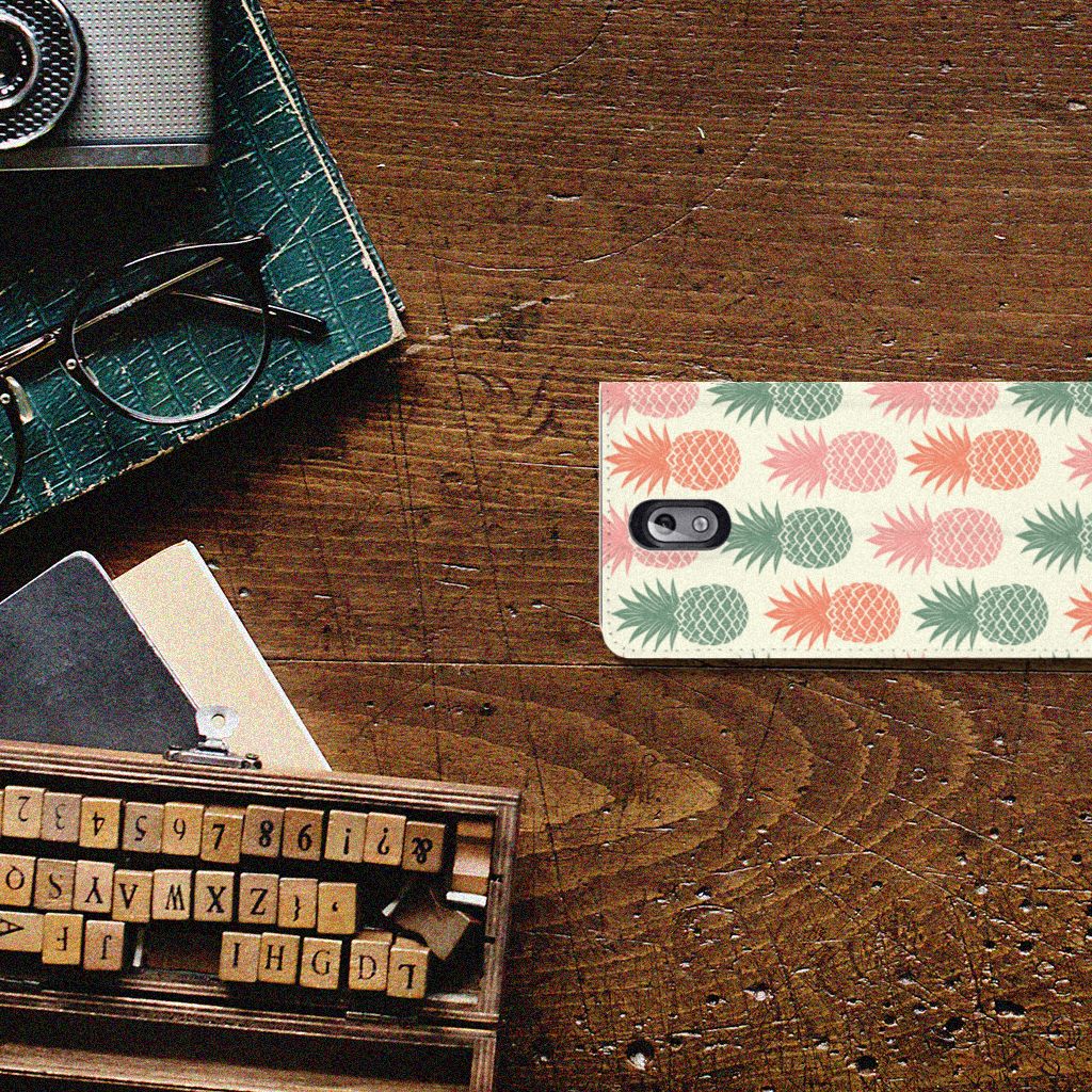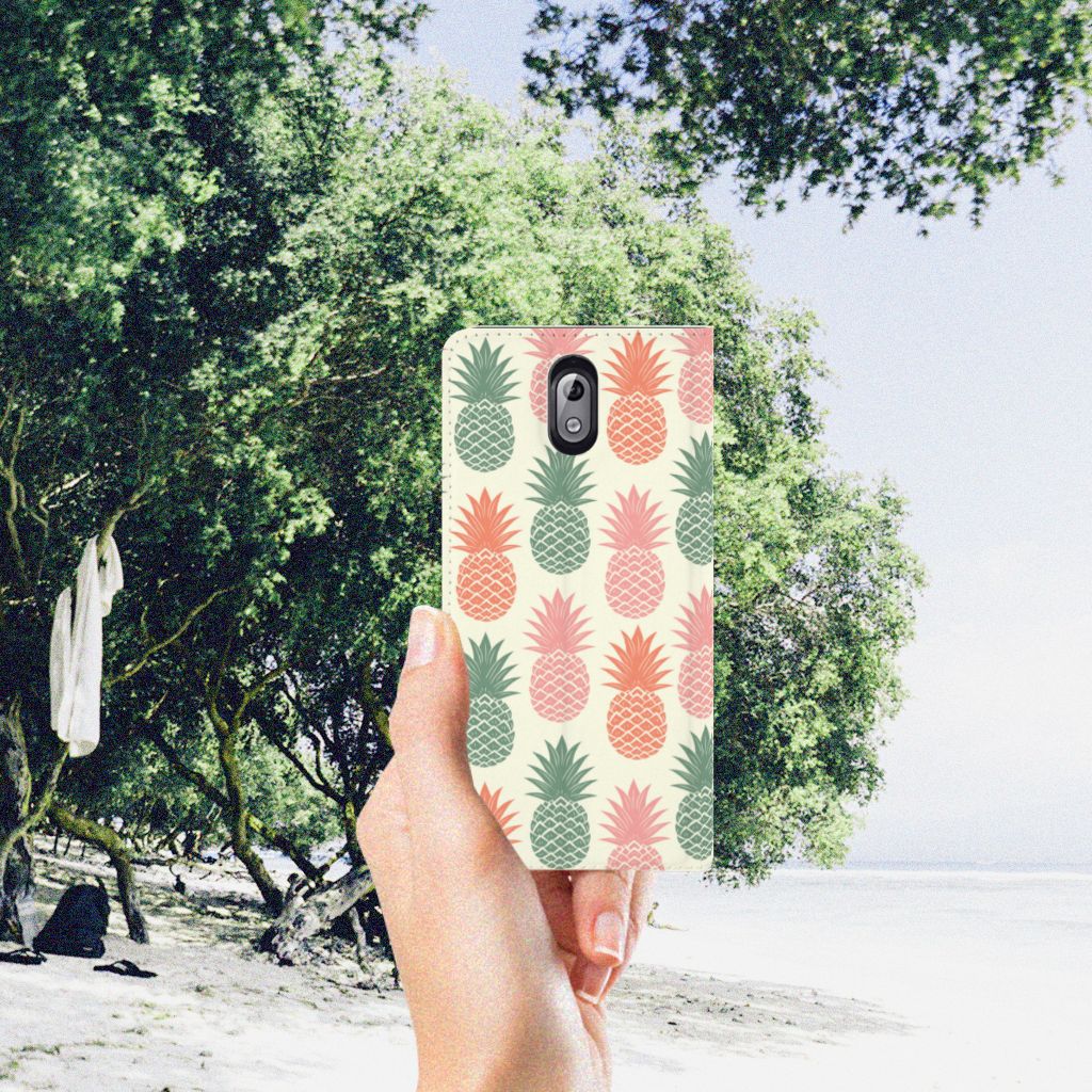 Ananas is een woord uit het Tupi, de taal van de Tupi-indianen, en betekent uitmuntende vrucht. Dit fruit van zeer hoge kwaliteit staat op onze superieure boekhoesjes, stand cases, hard cases en TPU cases. Jij blijft er gezond uitzien als je zo nu en dan een hap neemt van een Ananas , jouw smartphone blijft tip top in orde als je er een leuk telefoonhoesje omheen doet. Een ananas heeft stevig, veerkrachtig vruchtvlees. Een beetje te vergelijken met het TPU in onze hoesjes. TPU is elastisch materiaal, dat zeer buigzaam is. Vandaar dat het zeer schokbestendig is. Het ananas design staat op een stand case. Deze Nokia 3.1 (2018) Flip Style Cover beschermt jouw telefoon aan alle kanten en beschikt over een 1 opbergvakje en een speciale standaard. Het hoesje wordt afgesloten met een magneet aan de binnenzijde. De houder aan de binnenzijde is van TPU.