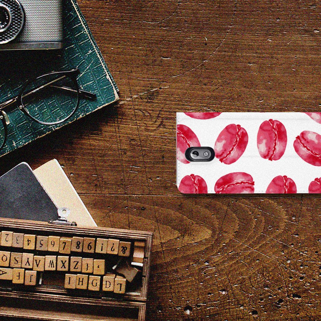 Dit stand hoesje met Pink Macarons is een zeer opvallende bescherming voor jouw smartphone. Macarons zijn Franse koekjes: kleine, rond en luchtig. Ze worden in veel verschillende smaken gemaakt, herkenbaar aan de verschillende kleuren zoals chocolade (donkerbruin), mokka (middenbruin), kersen (rood), pistache (groen), aardbei (roze), framboos (karmijn). Deze kleuren kun je net allemaal zien op dit fraaie design hoesje met roze macarons. Heb je altijd al een Nokia 3.1 (2018) Flip Style Cover willen hebben met roze macarons? Grijp dan nu je kans. Deze case heeft zeer veel goede eigenschappen, zoals 1 opbergvakje en een magnetische sluiting aan de binnenkant. Dit design hoesje met roze macarons wordt aan alle zijden bedrukt. De houder aan de binnenkant van het hoesje is van TPU. De case heeft ook een handige standaard.
