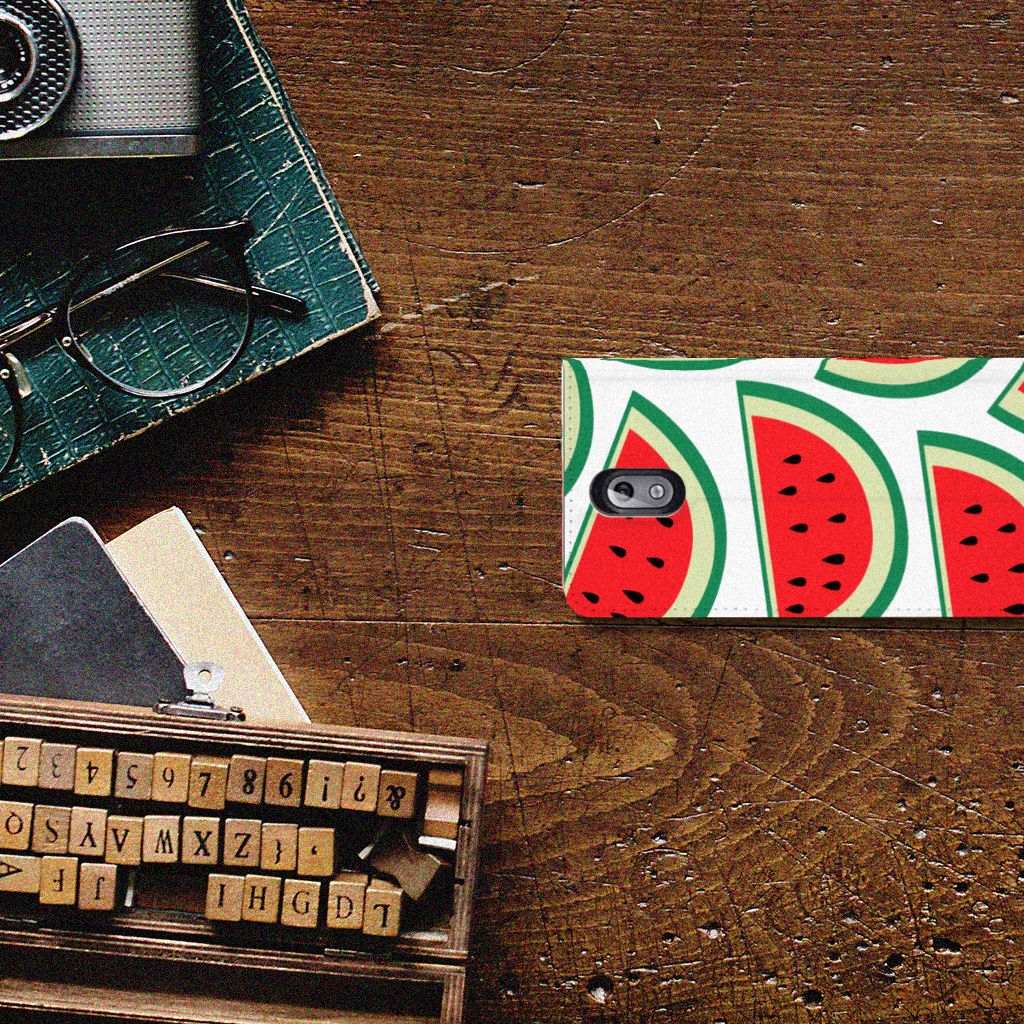 Watermeloenen zijn uitstekende dorstlessers, misschien dat je daarom juist in de zomermaanden extra enthousiast raakt van dit design hoesje Watermelons. Jij blijft gezond als je zo nu en dan een watermeloen neemt, jouw smartphone blijft in tact als je er deze Nokia 3.1 (2018) Flip Style Cover omheen doet. De stand case beschermt jouw telefoon aan alle kanten en beschikt over een 1 opbergvakje en een speciale standaard. Het hoesje wordt afgesloten met een magneet aan de binnenzijde. De houder aan de binnenzijde is van TPU. Je kunt ook kiezen voor andere soorten fruit op je hoesje. Kijk maar eens naar onze andere design hoesjes op onze website.