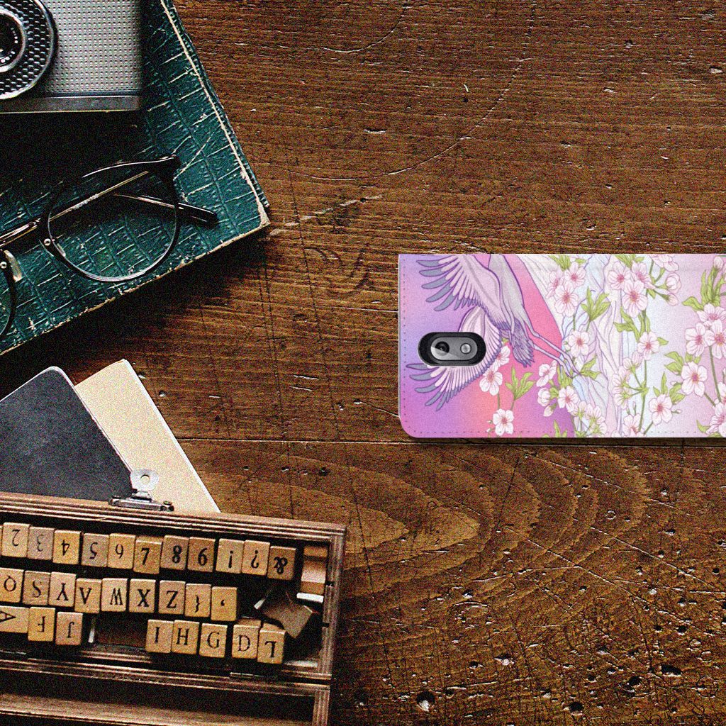 Met deze opvallende en kleurrijke Nokia 3.1 (2018) Hoesje maken met Bird Flying design blijft jouw toestel in uitzonderlijke staat. Een ooievaar fleurt al sinds mensenheugenis dorpen en steden op en doet dit ook met jouw stand case. Het design hoesje met deze reigerachtige vogel in roze en paarse kleuren is een zeer goede bescherming voor je telefoon. Het spetterende stand hoesje met opvallende ooievaar beschermt jouw telefoon aan alle zijden en beschikt over een opbergvakje voor een pasje of briefgeld. De roze met paarse case sluit perfect af met de magneet aan de binnenzijde. De houder aan de binnenzijde van het schitterende stand hoesje is van TPU. Dit is ook nog eens zeer flexibel materiaal. Het pu leer aan de buitenkant oogt zeer chique. Kijk voor andere dieren op een design hoesje binnen deze fraaie collectie. Ook kun je zelf een hoesje ontwerpen met je favoriete huisdier.