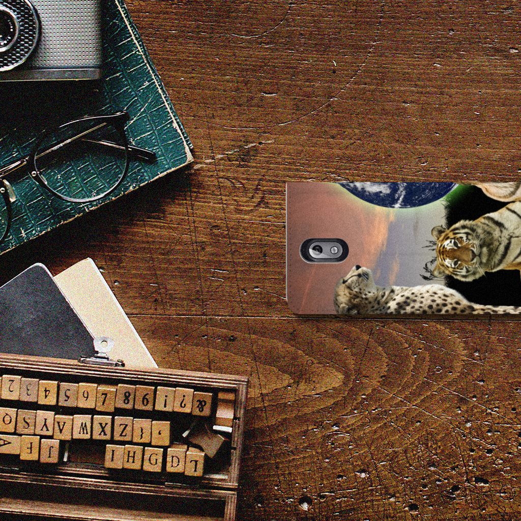 Deze standcase met roofdieren kan exclusief in het bezit van jou komen. Bovendien kun je hier zelf nog unieke teksten en/of beelden aan toevoegen. Je Hoesje maken krijgt dan een unieke identiteit. Roofdieren zoals tijgers op dit hoesje zijn voortdurend op zoek naar een geschikte prooi. De tijgers met aardbol op de achtergrond op deze stand case geven jouw Nokia 3.1 (2018) een hele stoere uitstraling. Deze bijzondere case is van PU-leer (buitenzijde) en TPU (binnenzijde) en beschikt over een houder en een speciale standaard. Verder is deze stand case met roofdieren voorzien van een magnetische sluiting aan de binnenzijde. Je zorgt voor de perfecte bescherming van je smartphone met dit design hoesje met roofdieren met aardbol op de achtergrond.