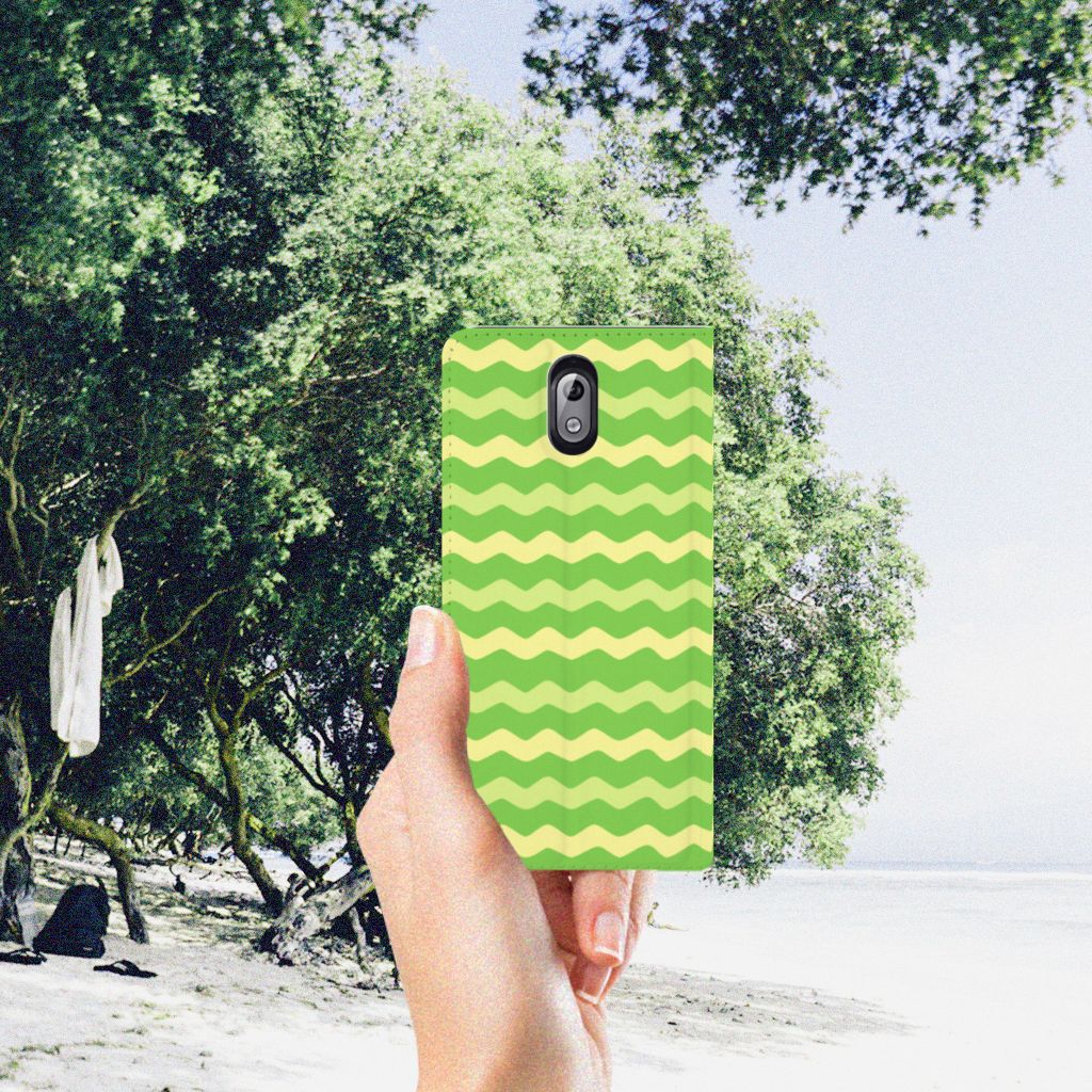 Dit groene design hoesje met groene golven is speciaal ontworpen voor jouw telefoon. We hebben een vleugje geel toegevoegd, zodat er sprake is van variatie. Dit Waves Green hoesje ziet er flitsend uit. Dat kan ook niet anders, als je weet dat we veel energie steken in het bedenken van originele designs. Een heel strak Nokia 3.1 (2018) Hoesje met Magneet, met zeer veel opties. Past dit groene design hoesje met golven goed bij jou? Bestel het dan vandaag nog, tegen zeer lage kosten. Het design staat op een stand case. Deze case met groene golven beschermt jouw telefoon aan alle kanten en beschikt over een 1 opbergvakje en een speciale standaard. Het hoesje wordt afgesloten met een magneet aan de binnenzijde. De houder aan de binnenzijde is van TPU. Alle zijden van de stand case worden bedrukt.