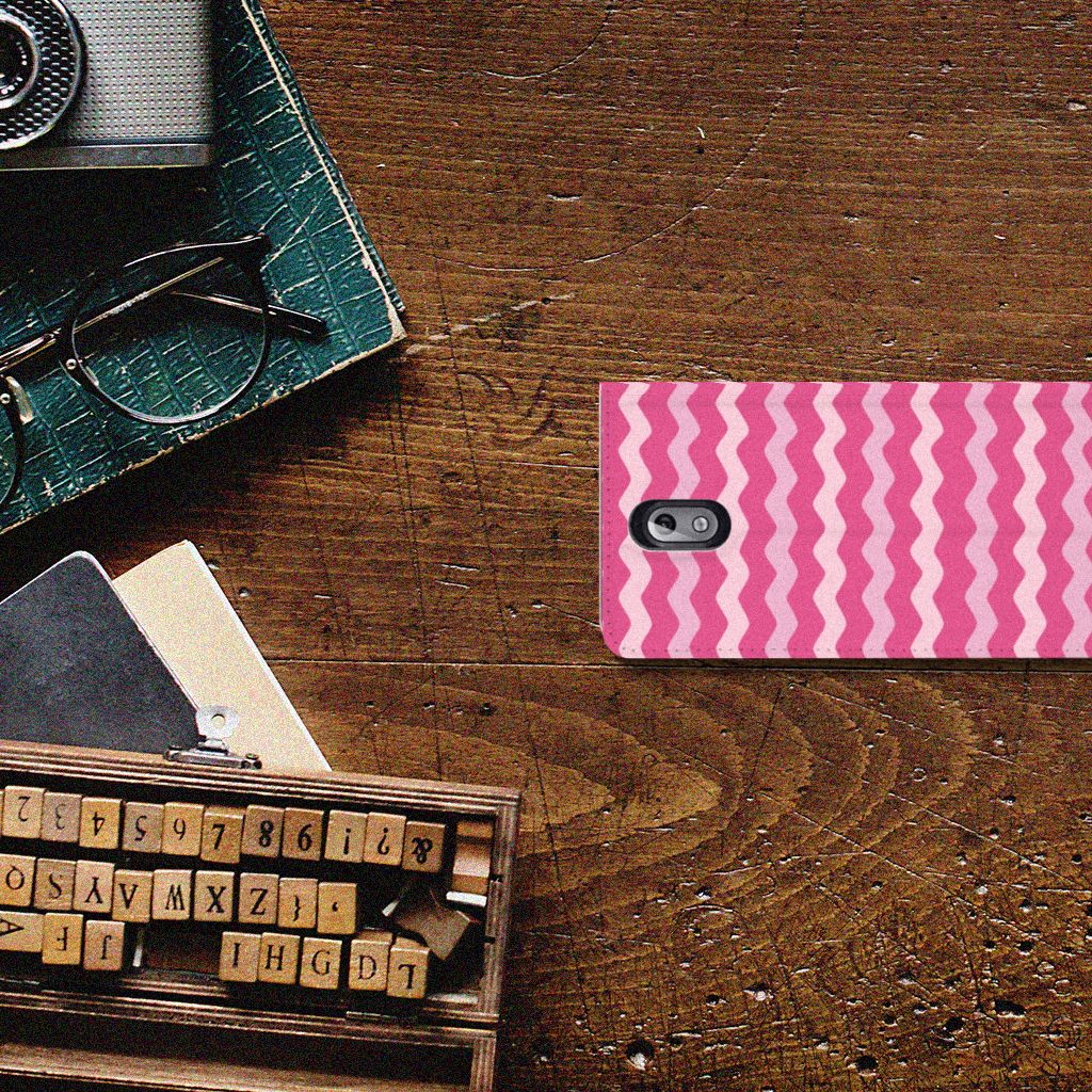 Dit design hoesje met roze golven is speciaal op maat gemaakt voor jouw telefoon. We hebben verschillende kleurstellingen gebruikt in het design, zodat de case er spannend en leuk uitziet. Dit roze hoesje met verschillende soorten golven ziet er opwindend uit. Het Nokia 3.1 (2018) Hoesje met Magneet wordt in ons eigen magazijn bedrukt, vandaar dat we de kosten zeer laag kunnen houden. Wij kunnen het duurzame hoesje met Waves Pink zeer snel leveren. Heb jij altijd al een design hoesje met verschillende soorten roze willen hebben? De stand case met roze golven beschermt jouw telefoon aan alle kanten en beschikt over een 1 opbergvakje en een speciale standaard. Het roze hoesje wordt afgesloten met een magneet aan de binnenzijde. De houder aan de binnenzijde van de case in verschillende soorten roze is van het flexibele TPU. Alle zijden van de roze stand case worden bedrukt.