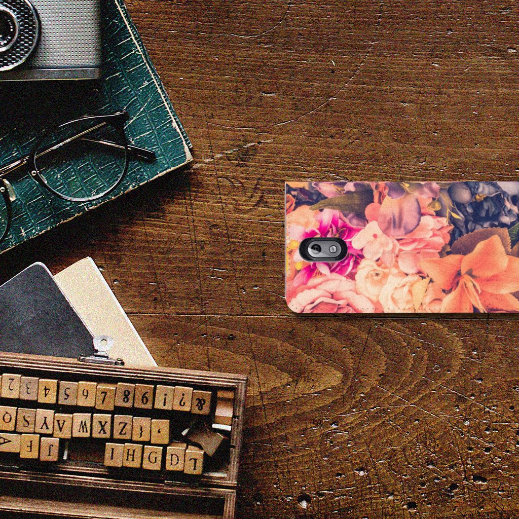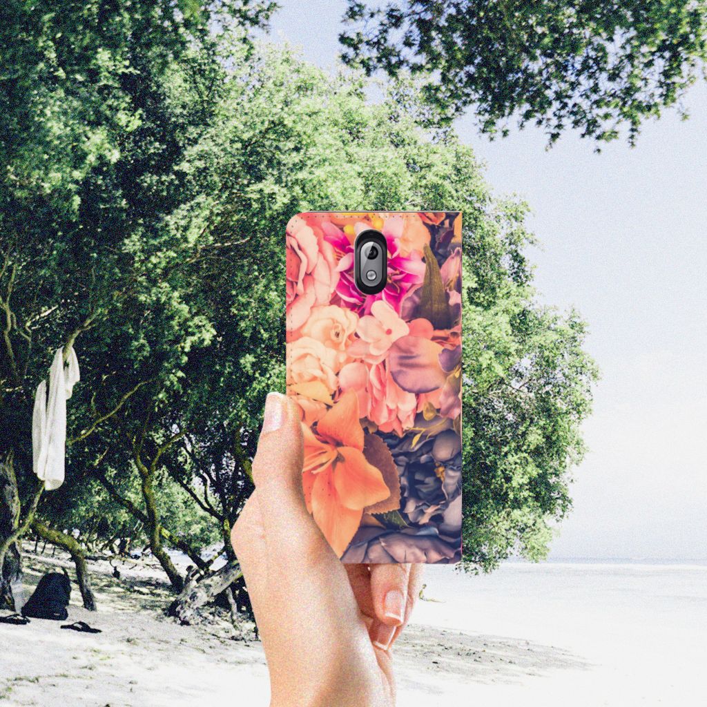 Dit Bosje Bloemen doet een mens en zijn smartphone goed. De oranje, paarse en roze bloemen op deze Nokia 3.1 (2018) Smart Cover geven jouw smartphone een zeer sierlijke uitstraling. Je wordt er ook meteen vrolijker van als je aan het appen, mailen of aan het bellen bent. Valt dan je telefoon op de grond, dan zal er dankzij de stand case met oranje, paarse en roze bloemen geen schade ontstaan. Onze stand cases met oranje, paarse en roze bloemen bieden de allerbeste bescherming en zijn heel praktisch, wat blijkt uit onder meer het vakje aan de binnenkant en de handige standaard waarmee je de smartphone rechtop op tafel neer kunt zetten. De oranje, paarse en roze bloemen passen goed op alle zijden van de case. Op deze stand case van leer en TPU (houder aan de binnenkant) is het ook mogelijk je eigen ontwerp te zetten. In no time maak je zelf een stand case met daarop foto’s van jouw favoriete bloemen.