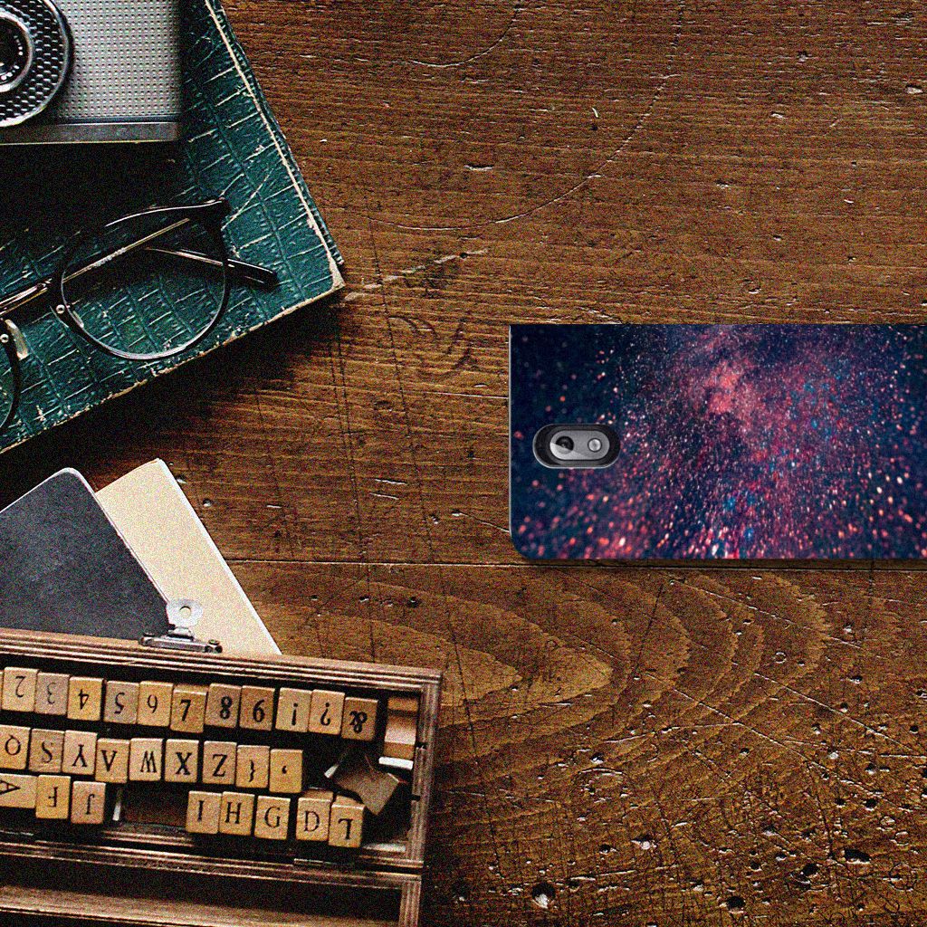 Je waant je in de zevende hemel met dit kunstzinnige, glitterachtige design hoesje met paarse en blauwe kleuren tegen een inktzwarte achtergrond. Het smartphone hoesje heeft ook een wat science fiction achtige allure. Met deze design Stars case zul je zeker opvallen. Als dit je bedoeling is, bestel dat snel dit waanzinnig mooie product voor je Nokia 3.1 (2018). Het telefoonhoesje is van alle gemakken voorzien en combineert een hele fraaie uitstraling met maximaal comfort. Bovendien is het gemaakt van zeer stevig en flexibel materiaal. Het unieke design, door B2C Telecom ontworpen, staat op een Stand Case. Deze case beschermt jouw telefoon aan alle kanten en beschikt over een 1 opbergvakje en een speciale standaard. Het hoesje wordt afgesloten met een magneet aan de binnenzijde. De houder aan de binnenzijde is van TPU.