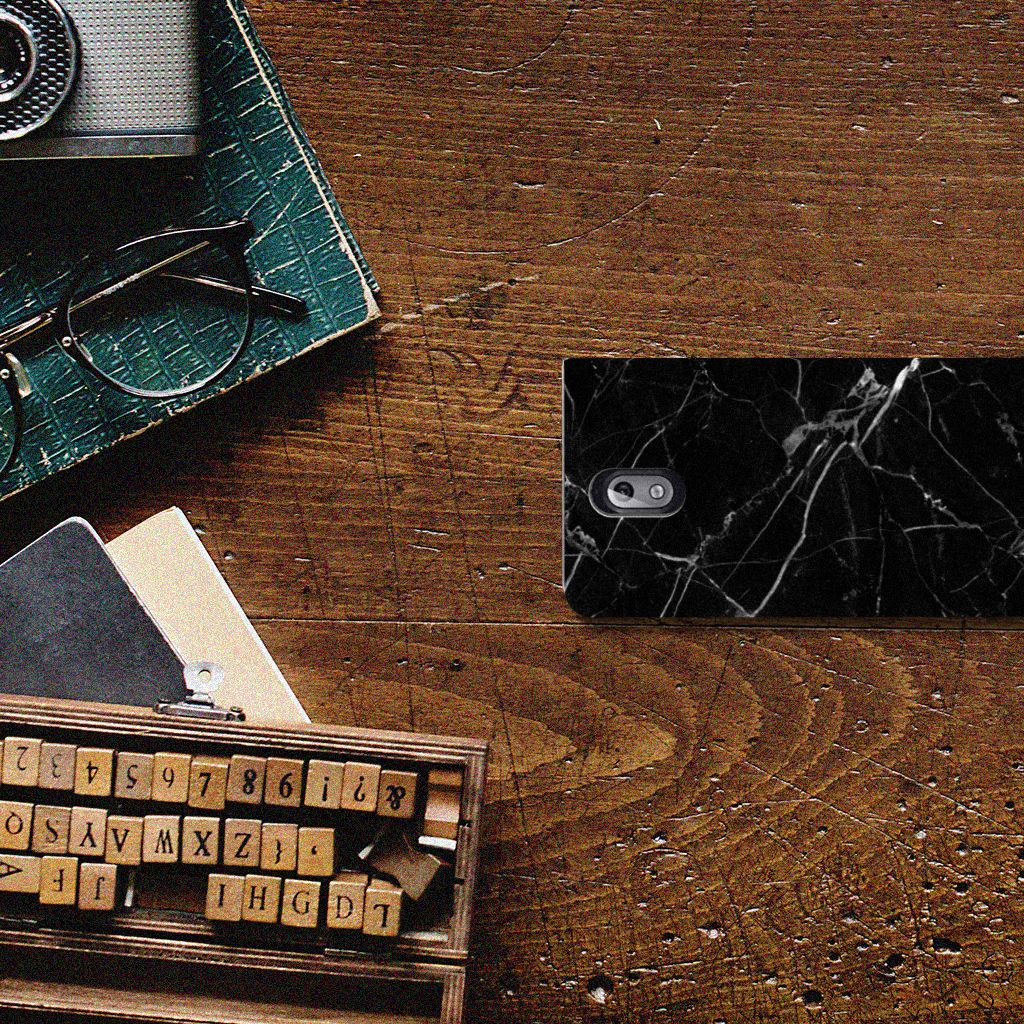 Dit design hoesje met Marmer Zwart is voor de artistieke personen onder ons. De Grieken en Romeinen wisten het materiaal al te waarderen door het in de bouw toe te passen. Naast het witte marmer met haar zacht grijze geaderde belijning zijn de diverse soorten in een gevarieerd kleurenpallet te krijgen. We hebben mooie kleuren op design hoesjes gezet, zoals in dit geval zwart marmer. Dit is een Nokia 3.1 (2018) Standcase met marmer in zwarte kleur. Het marmer wordt bedrukt op alle zijden van een stand case, die beschikt over 1 vakje voor een pasje en een magnetische sluiting aan de binnenzijde. Verder heeft de hoes een houder van TPU. De rijkdom aan kleuren en varianties in afwerking geeft ontwerpers de vrijheid om met marmer hele mooie architectonische projecten te realiseren. Wij hebben onze ontwerper tevens veel vrijheid gegeven. Het resultaat zie je terug in deze stand case met zwart marmer, dat de ideale bescherming voor jouw smartphone biedt.