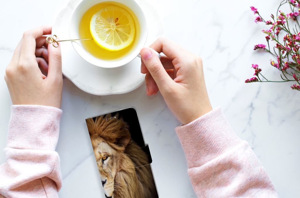 Nokia 3.1 (2018) Telefoonhoesje met Pasjes en met magnetische sluitclip Leeuw