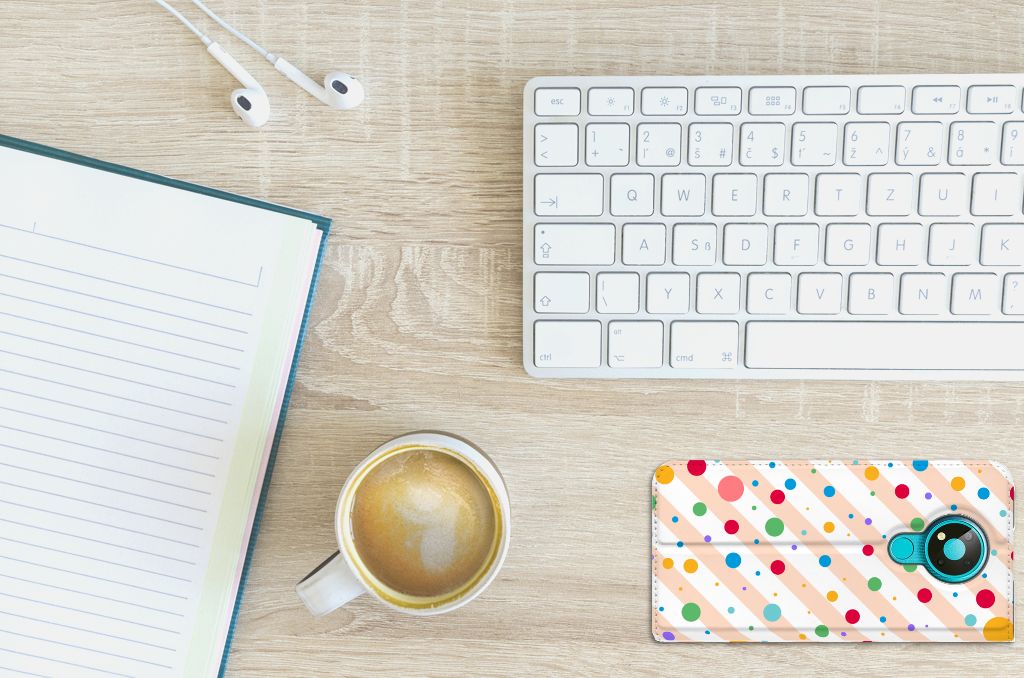 Een Nokia 3.4 Hoesje met Magneet met verschillende kleuren stippen is een schitterende bescherming van jouw smartphone. De stand case met het design Dots in alle kleuren van de regenboog komt voor jou als geroepen. Maak je geen gebruik van dit zeer mooie hoesje, dan kan het met jouw smartphone een beetje beroerd aflopen. Dit mooie stand hoesje met verschillende kleuren stippen zorgt voor een volledige bescherming van je smartphone en wordt aan alle zijden bedrukt. Dankzij de speciale standaard kun je rustig achteroverleunend filmpjes bekijken terwijl je je handen vrij hebt. Verder is de houder aan de binnenzijde van TPU. Jouw telefoon is dus zeer goed opgeborgen en kan geen kant op. Met een hoesje met stippen in verschillende kleuren op alle zijden blijft jouw telefoon volledig in tact. Heb je liever een stand case met stippen in andere opvallende kleuren? Ontwerp dan zelf case met je eigen foto’s en teksten!
