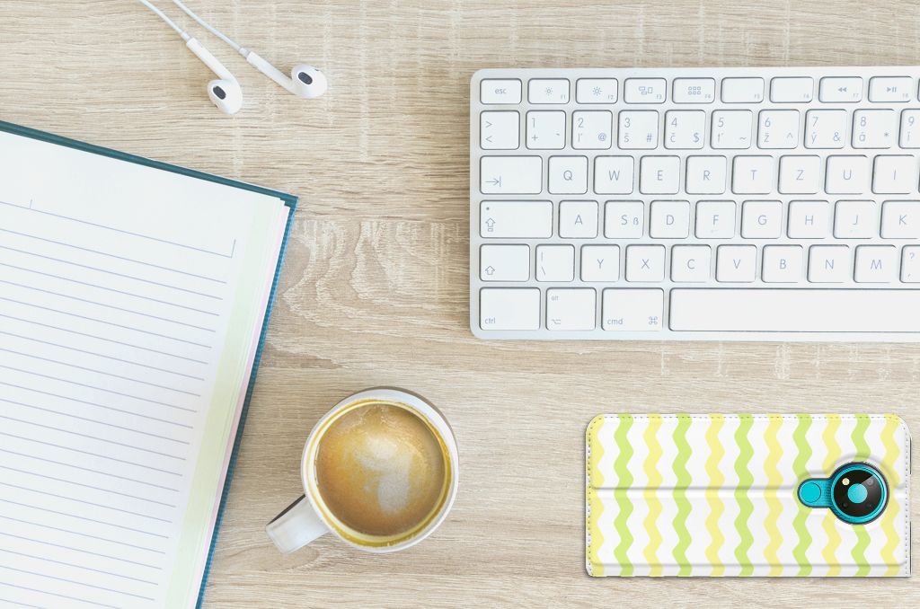 Dit Waves Yellow design hoesje met licht groene en gele golven is speciaal ontworpen voor jouw telefoon. We hebben een vleugje lichtgeel toegevoegd, zodat de case er een beetje spannender en leuker uitziet. Dit licht groene hoesje met licht groene golven ziet er oogstrelend uit. Het wordt in ons eigen magazijn bedrukt, in zeer goede kwaliteit inkt. Wij kunnen dus een zeer duurzaam hoesje met licht groene golven garanderen. Dit hele mooie Nokia 3.4 Hoesje met Magneet heeft vele extra’s. Is dit licht groene design hoesje je op het lijf geschreven? Grijp dan nu je kans. Deze stand case met licht groene golven beschermt jouw telefoon aan alle kanten en beschikt over een 1 opbergvakje en een speciale standaard. Het licht groene hoesje wordt afgesloten met een magneet aan de binnenzijde. De houder aan de binnenzijde is van het flexibele TPU. Alle zijden van de stand case worden bedrukt.