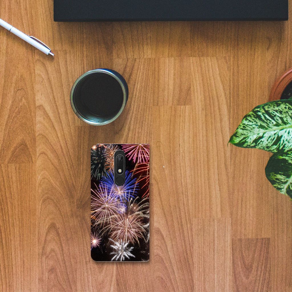 Deze Nokia 5.1 (2018) Hippe Standcase levert gegarandeerd Vuurwerk op. Kijk alleen al eens naar de print van siervuurwerk, in zeer veel verschillende kleuren. Als je dit hoesje ziet kun je bijna niet geloven dat sommige gemeenten in Nederland overwegen om vuurwerk te verbieden. Er gebeuren weliswaar ongelukken mee, maar zoiets schitterends als op deze stand case met vuurwerk wil je toch gewoon niet missen. Bovendien beschermt dit hoesje jouw smartphone aan alle kanten. Alle zijden van deze case worden bedrukt en met een speciale standaard is het erg prettig om filmpjes te bekijken. De case wordt aan de binnenzijde met een magneet afgesloten en de houder aan de binnenzijde is van TPU. Onder alle omstandigheden zal deze case met 1 opbergvakje perfect functioneren, ook als je met nieuwjaar vuurwerk aan het afsteken bent. Zorg dan overigens wel dat je zelf ook voldoende afgeschermd bent van het vuurwerk.