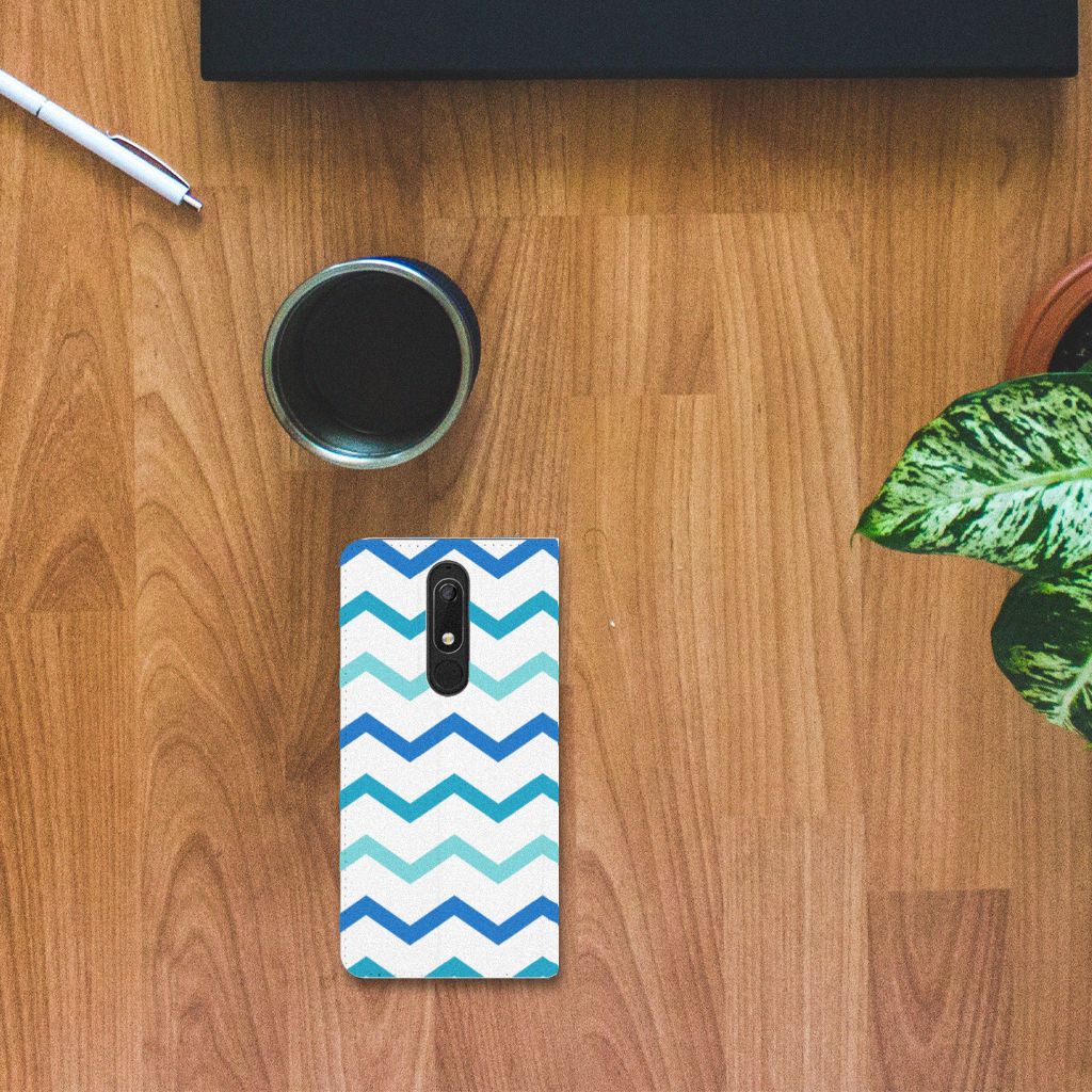 Dit zigzag blauwe design hoesje is speciaal ontworpen voor jou. We hebben bewust verschillende stijlen blauw gebruikt, zodat er voldoende sprake is van variatie. Dit blauwwitte Hoesje met Magneet ziet er super strak uit. Dat kan ook niet anders, als je weet dat onze zeer talentvolle designer er hoogstpersoonlijk voor verantwoordelijk is. Hij schudt wekelijks nieuwe designs uit zijn mouw en dit zigzag blauwe hoesje is een van zijn fraaiste creaties. Een heel dik design hoesje, al zeggen we het zelf. Valt dit blauwwitte design hoesje goed bij jou? Bestel het dan vandaag nog en je hebt het morgen in huis. Het design staat op een stand case. Deze case beschermt jouw Nokia 5.1 (2018) aan alle kanten en beschikt over een 1 opbergvakje en een speciale standaard. Het hoesje wordt afgesloten met een magneet aan de binnenzijde. De houder aan de binnenzijde is van TPU. Alle zijden van de stand case worden bedrukt.