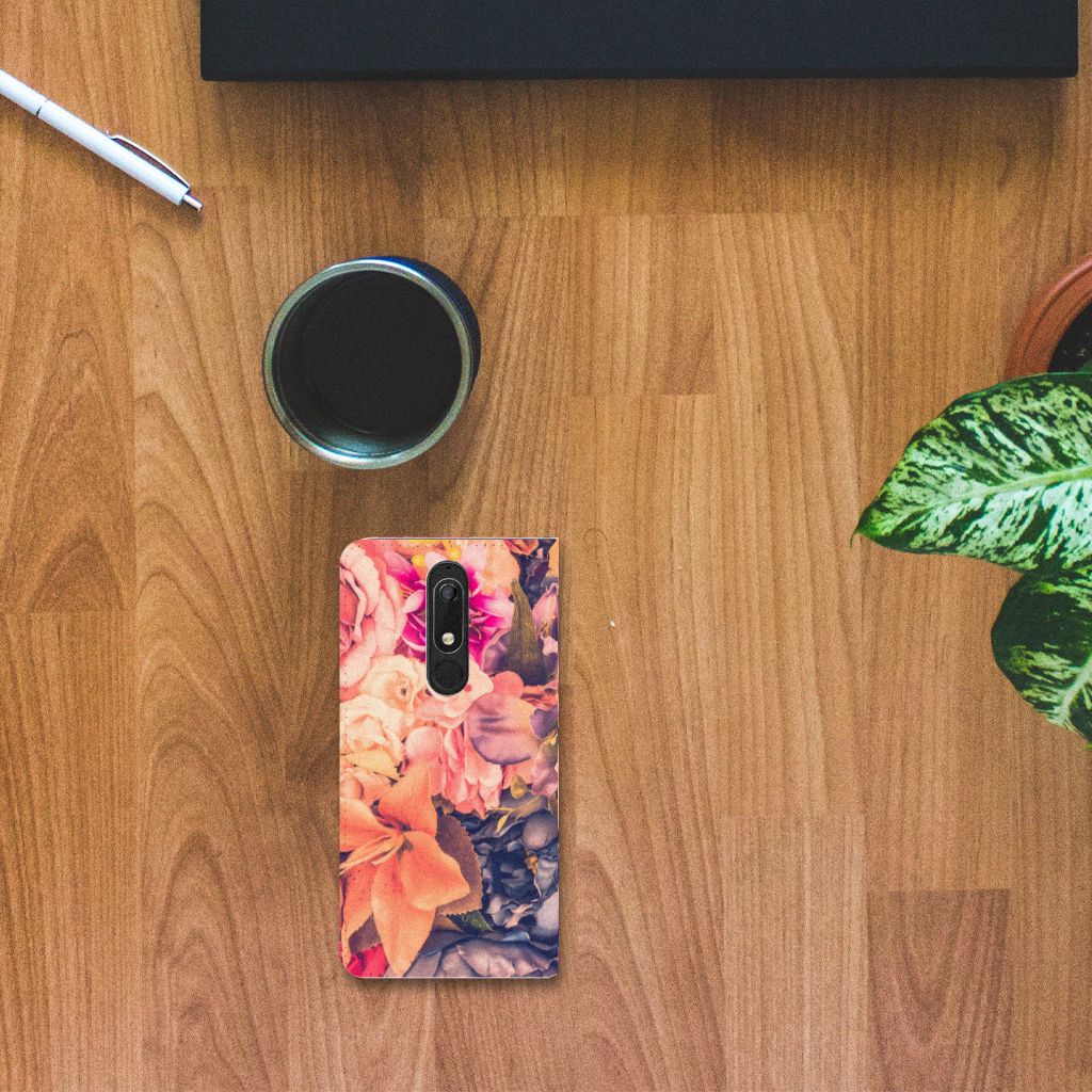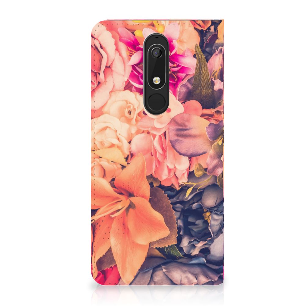 Nokia 5.1 (2018) Smart Cover Gouden Bloemen