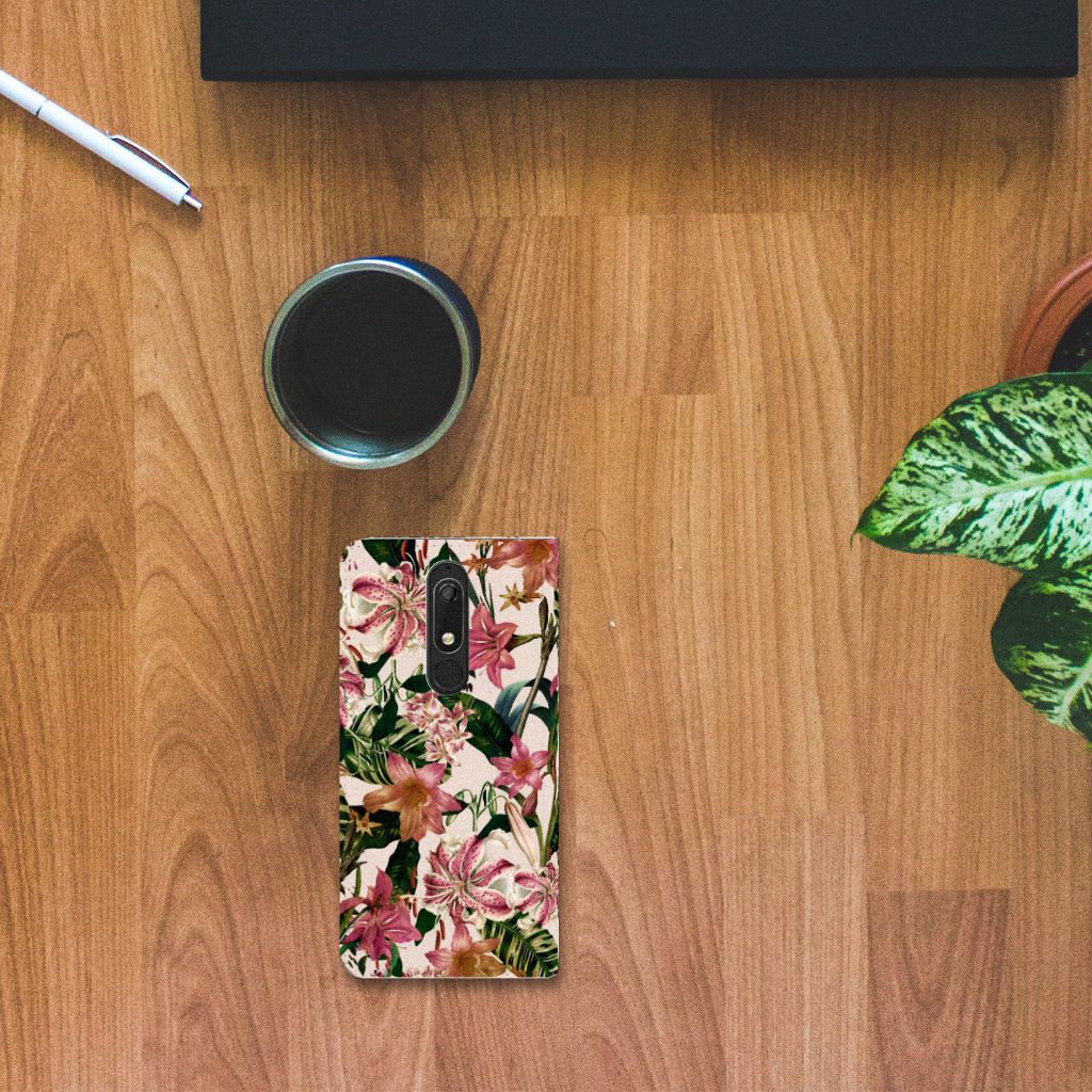 Dit Flowers design is een zegen voor de mens en zijn smartphone. De paarswitte bloemen en groene bladeren op deze Nokia 5.1 (2018) Smart Cover geven jouw smartphone een zeer sierlijke uitstraling. Je krijgt er meteen een goed gevoel bij als je aan het appen, mailen of aan het bellen bent. Valt dan je telefoon op de grond, dan zal er dankzij de stand case met paarswitte bloemen en groene bladeren geen schade ontstaan. Onze stand cases met paarswitte bloemen en groene bladeren bieden de allerbeste bescherming en zijn heel praktisch, wat blijkt uit onder meer het vakje aan de binnenkant en de handige standaard waarmee je de smartphone rechtop op tafel neer kunt zetten. De paarswitte bloemen en groene bladeren komen op alle zijden van de case te staan. Op deze stand case van leer en TPU (houder aan de binnenkant) kun je in no time zelf foto’s van jouw favoriete bloemen zetten.