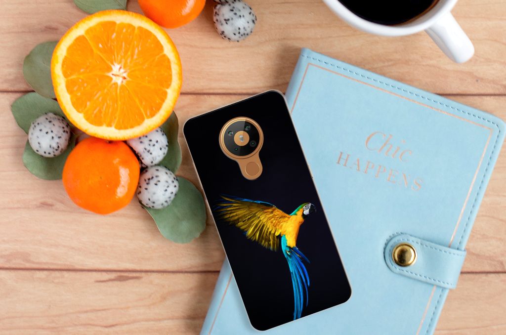 Dit design hoesje met Papegaai tegen een zwarte achtergrond is een zeer flexibele bescherming voor jouw smartphone. Dit komt vooral omdat deze print op een tpu case staat. Dit is een zeer buigzaam hoesje, dat de telefoon vooral aan de achterkant en zijkanten beschermt. De bovenkant van de Nokia 5.3 TPU Hoesje wordt bedrukt met deze schitterende print. De zijkanten blijven doorzichtig. Papegaaien zijn erg sociale vogels die voldoende aandacht en gezelschap nodig hebben. Als je er voor kiest om een papegaai aan te schaffen, is het een goed idee om een koppeltje te nemen. Koop je meerdere tpu cases met een papegaai, dan ga je automatisch minder betalen per hoesje. Wij hanteren een systeem van bundelkorting. Dus koop dit hoesje met opstaande randen voor een spotprijs.