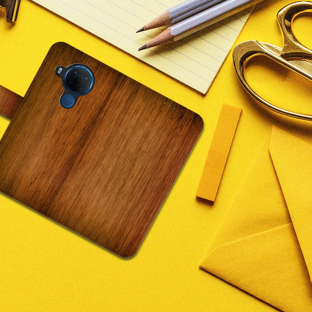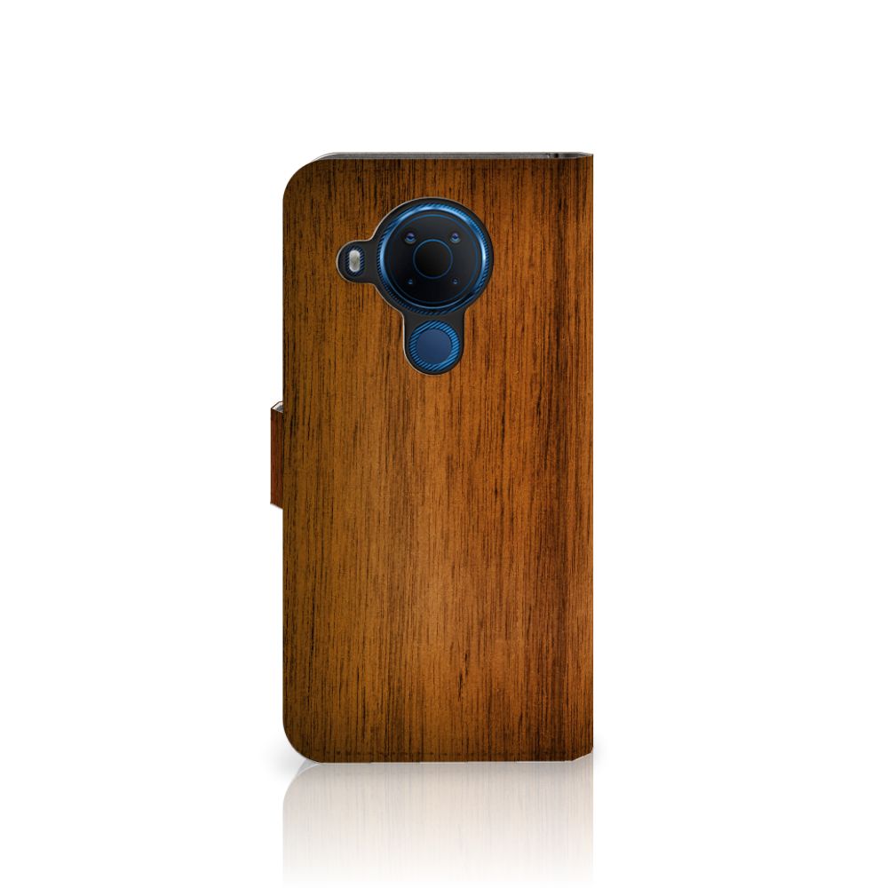 Nokia 5.4 Book Style Case met pasjeshouder Donker Hout