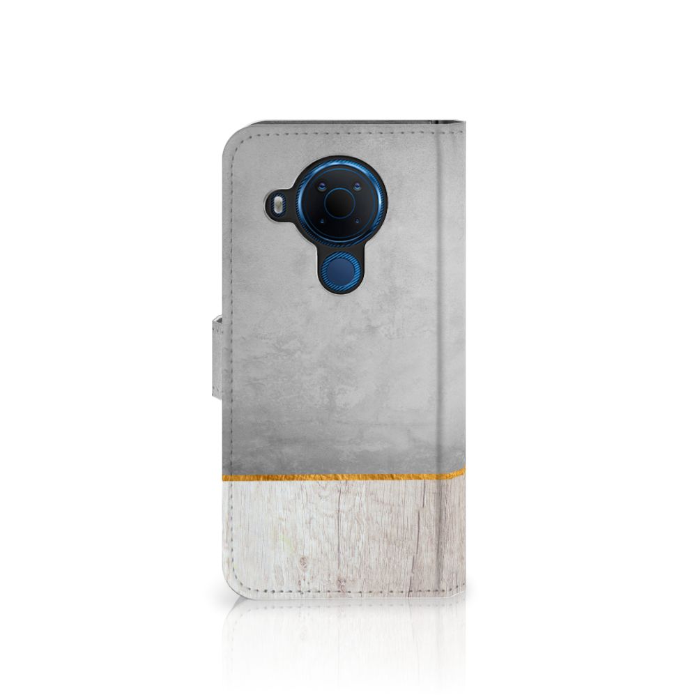 Nokia 5.4 Bookstyle Case met pasjes Wood Concrete