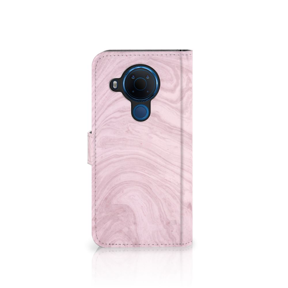 Nokia 5.4 Bookcase met magnetische sluitclip Marble Pink