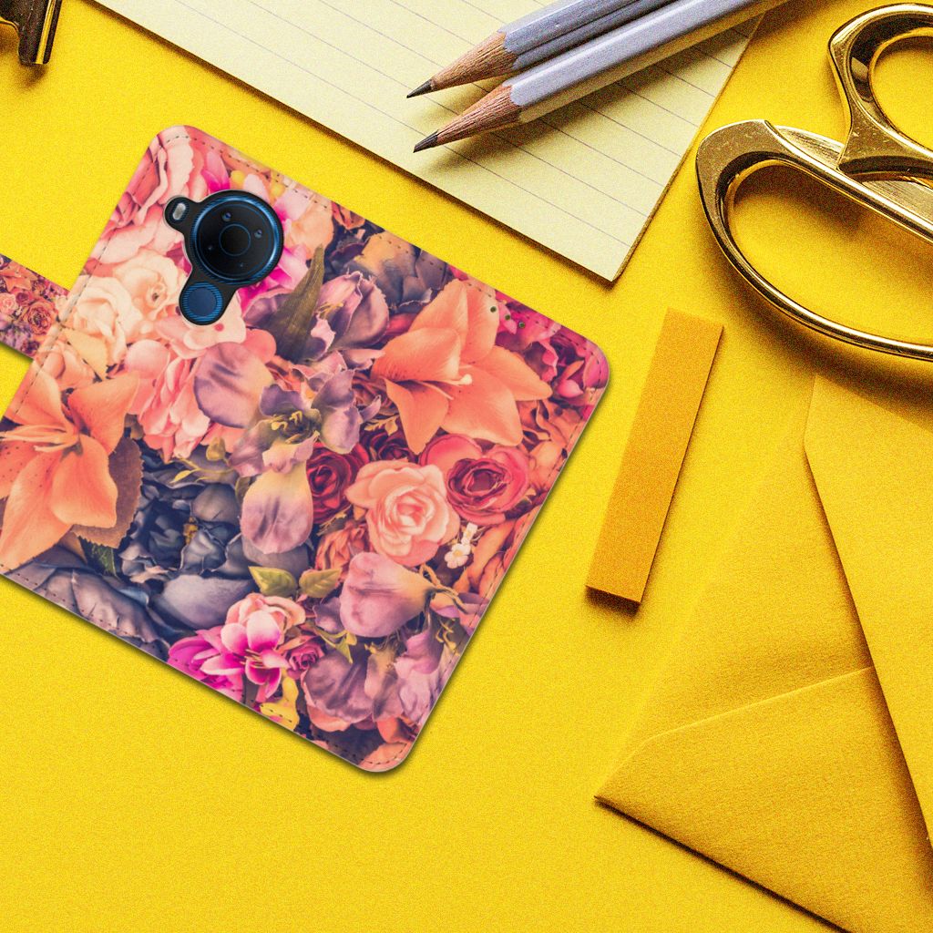 Nokia 5.4 Hoesje met ruimte voor 3 pasjes Bosje Bloemen