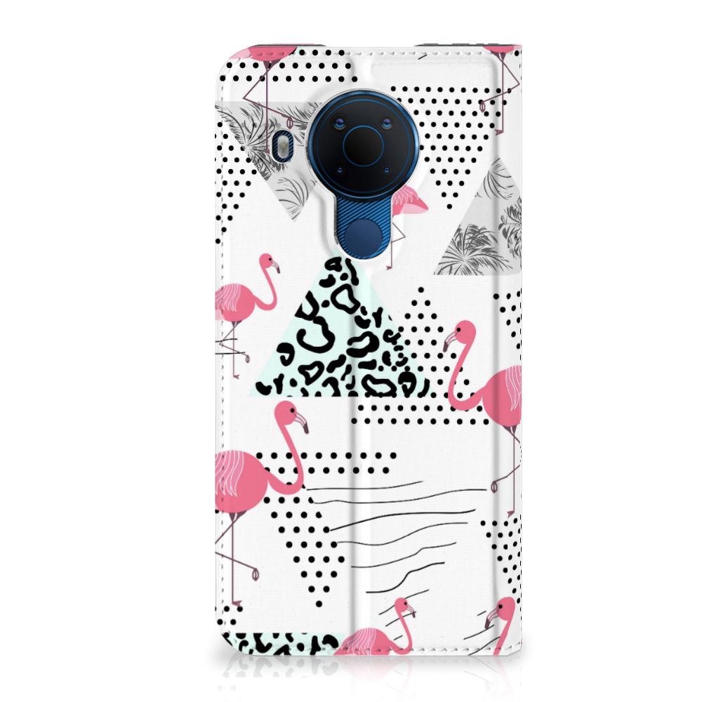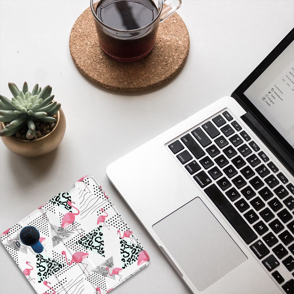 Een Nokia 5.4 Hoesje maken met Flamingo Triangle is in vele opzichten bijzonder. De rode flamingo op het hoesje komt oorspronkelijk uit het Caraïbische gebied. Stel dat je in deze regio vakantie viert, dan val je zonder meer op met dit hoesje met flamingo’s en driehoeken. Deze stand case biedt bescherming voor alle zijden van je telefoon. Jouw smartphone ligt goed opgeborgen in de TPU houder aan de binnenzijde en in dit gedeelte van het hoesje met flamingo’s en driehoeken zit de magnetische sluiting. Ook de palmbomen op deze stand case bieden het ultieme vakantiegevoel. De stand case met flamingo’s en driehoeken heeft vakjes voor pasjes en is op maat gemaakt.