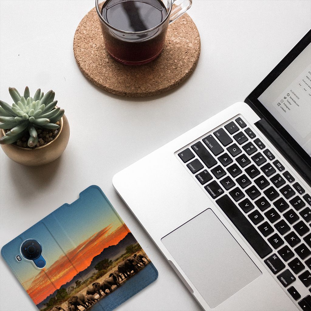Dit hoesje is zo sterk als een olifant. Dat is goed nieuws, want jouw telefoon heeft een zeer goede bescherming nodig. Dat krijg je met dit design hoesje met print van Olifanten. De Afrikaanse olifant, het allergrootste landdier ter wereld, heeft waarschijnlijk het meest te lijden gehad van stroperij om het ivoor. Deze dieren verdienen dus een goede bescherming, net als jouw smartphone. Met een Nokia 5.4 Hoesje maken met olifant erop krijg je dit zeker voor elkaar. De stand case beschermt alle zijden van je telefoon en heeft aan de binnenzijde een vakje waarin je een pasje kunt opbergen. De sterke olifant komt zeer goed tot zijn recht op deze case, die aan de binnenkant een houder heeft van tpu. Ook de magneet aan de binnenkant is zeer handig. Alle zijden van de case worden bedrukt met olifanten.