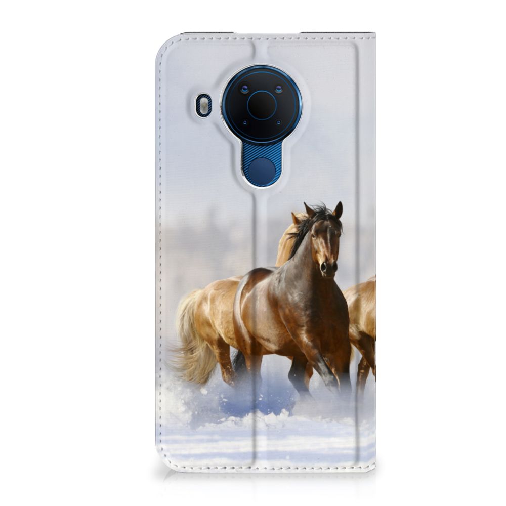 Voor de paardenliefhebbers onder ons hebben we onze collectie uitgebreid met dit design hoesje met print van paarden. Vroeger hield de mens vooral werkpaarden, inmiddels hebben we vriendschap gesloten met het paard. Vandaar dat het ook een favoriet dier is op onze smartphonehoesjes, zoals deze stand cases. Deze Nokia 5.4 Hoesje maken met Paarden is niet alleen super mooi en chique, het sluit ook nog perfect dankzij de magneet aan de binnenzijde. Verder heeft de case een TPU houder aan de binnenzijde en een houder voor een pasje. Zie je liever je eigen paard terug op een hoesje? Dat kan! Door zelf een uniek hoesje te ontwerpen, met eigen foto’s en teksten. De stand case met paarden wordt aan alle zijden bedrukt.