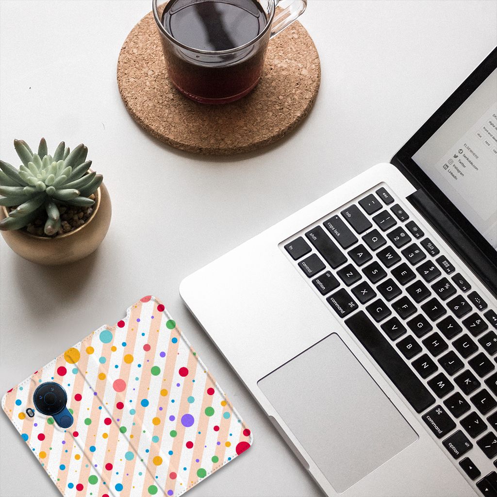 Een Nokia 5.4 Hoesje met Magneet met verschillende kleuren stippen is een schitterende bescherming van jouw smartphone. De stand case met het design Dots in alle kleuren van de regenboog komt voor jou als geroepen. Maak je geen gebruik van dit zeer mooie hoesje, dan kan het met jouw smartphone een beetje beroerd aflopen. Dit mooie stand hoesje met verschillende kleuren stippen zorgt voor een volledige bescherming van je smartphone en wordt aan alle zijden bedrukt. Dankzij de speciale standaard kun je rustig achteroverleunend filmpjes bekijken terwijl je je handen vrij hebt. Verder is de houder aan de binnenzijde van TPU. Jouw telefoon is dus zeer goed opgeborgen en kan geen kant op. Met een hoesje met stippen in verschillende kleuren op alle zijden blijft jouw telefoon volledig in tact. Heb je liever een stand case met stippen in andere opvallende kleuren? Ontwerp dan zelf case met je eigen foto’s en teksten!