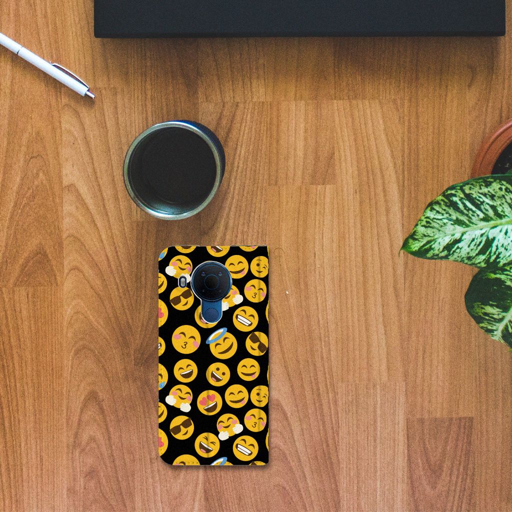 Je gebruikt ze waarschijnlijk dagelijks: emoji’s. Daarom hebben we besloten ze op een design hoesje te zetten. De kleurrijke, vaak gele emoticons maken chatberichten net wat spontaner. Dat hebben we allemaal te danken aan Japan, waar de emoji’s die we zo goed kennen vandaan komen. Ondertussen zijn er meer dan 1800! Deze passen natuurlijk niet allemaal op een Nokia 5.4 Hoesje met Magneet, maar we hebben de meeste gebruikte exemplaren erop gezet. Deze stand case is voorzien van een houder voor een pasje. Super handig. De telefoon zelf zit in een houder van TPU, dat zeer flexibel is. We gebruiken emoji’s vaak om complete woorden te vervangen. Dit smartphone hoesje zegt dan ook meer dan duizend woorden kunnen. De stand case heeft een magnetische sluiting aan de binnenzijde en wordt aan alle kanten bedrukt met emoji’s. Tevens is er een standaard.