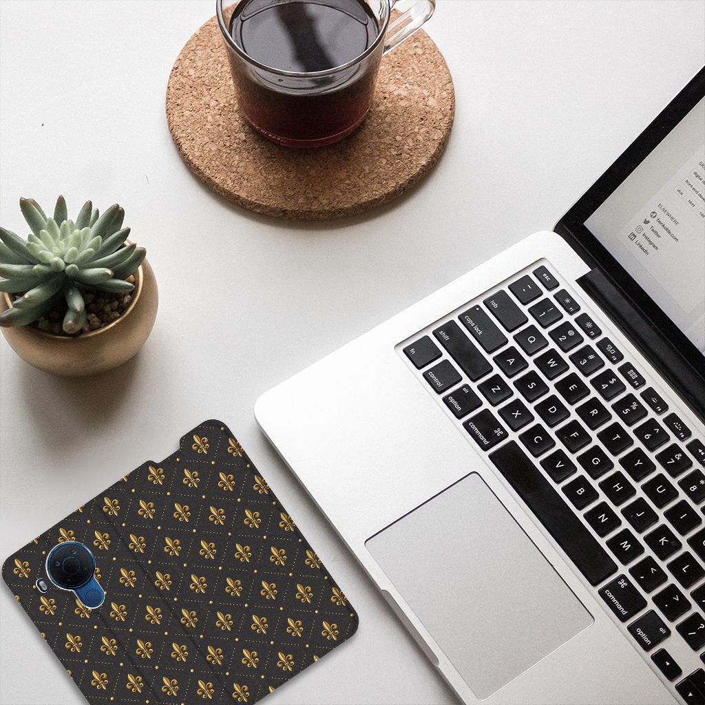 Hét symbool van het Franse koningshuis, de fleur-de-lis (ook fleur-de-lys of Franse lelie), mag natuurlijk niet ontbreken in onze collectie design hoesjes. De naam betekent letterlijk lelie-bloem. Deze Franse Lelie kunnen we op verschillende soorten cases printen, zoals een zeer praktische en onderscheidende stand case. Een Nokia 5.4 Hoesje met Magneet met Franse Lelie ziet er niet alleen ontzettend chique uit, het is dankzij onder meer het opbergvakje aan de binnenzijde en de standaard zeer praktisch. Het is niet helemaal duidelijk welke bloem model heeft gestaan voor het Franse symbool. Wel is duidelijk dat de Franse lelie volledig tot wasdom komt op deze handige stand case. Het beschikt verder over een houder van tpu en een magnetische sluiting aan de binnenkant. We bedrukken de case op het moment dat jij deze bestelt.