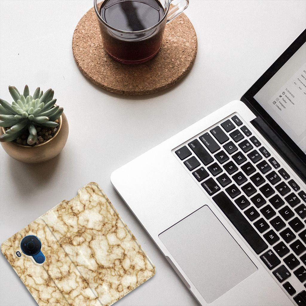 Deze Nokia 5.4 Standcase met Marmer Goud is het waard om een blokje voor om te rijden. Dit is overigens niet nodig. Als je het hoesje met goud marmer nu bestelt heb je het zeer snel in huis. Je kunt er bij wijze van spreken thuis op gaan zitten wachten. Je hebt diverse soorten marmer. We hebben enkele fraaie kleuren op onze hoesjes gezet, zoals in dit geval het gouden marmer. Het gouden marmer wordt bedrukt op alle zijden van de stand case, die beschikt over een vakje voor pasjes of briefgeld en een magnetische sluiting aan de binnenzijde. Verder heeft de case met goud marmer een houder van TPU. De rijkheid aan kleuren en variaties in afwerking is een schitterende eigenschap van marmer. Dit stand hoesje met goud marmer heeft ook veel schitterende eigenschappen en is de ideale bescherming voor jouw smartphone.