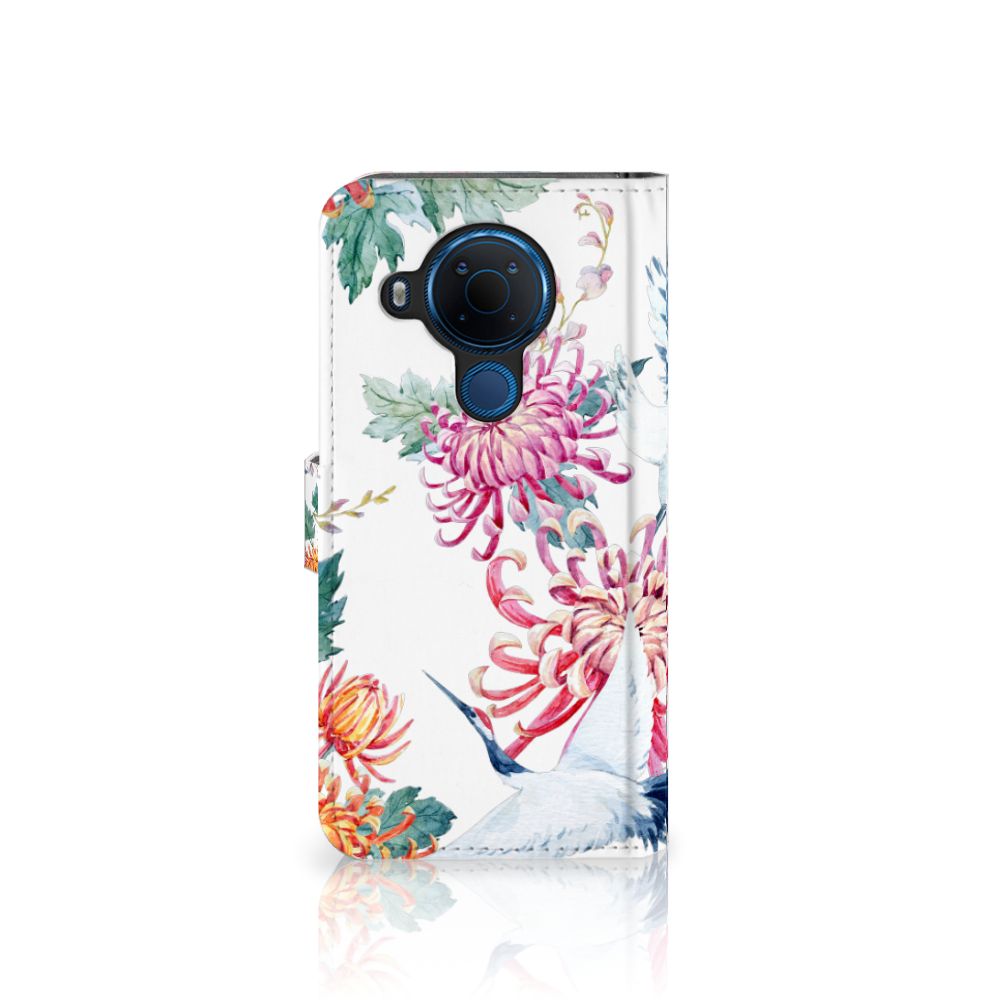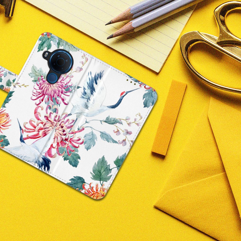 Nokia 5.4 Telefoonhoesje sluit met magnetische lipje Bird Flowers