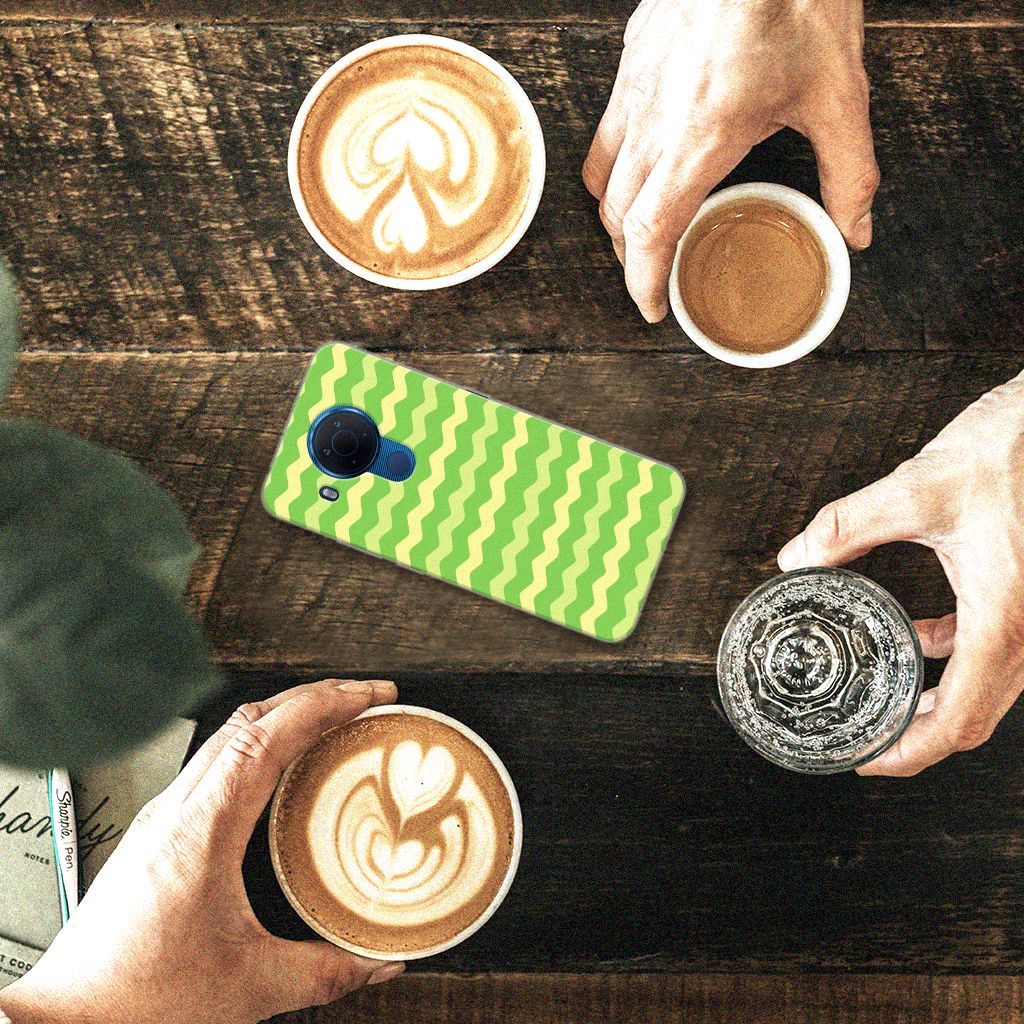 Dit groene design hoesje met groene golven is speciaal ontworpen voor jouw telefoon. We hebben een vleugje geel toegevoegd, zodat er sprake is van variatie. Dit Waves Green hoesje ziet er flitsend uit. Dat kan ook niet anders, als je weet dat we veel energie steken in het bedenken van originele designs. Een heel strak Nokia 5.4 TPU bumper, met zeer veel opties. Past dit groene design hoesje met golven goed bij jou? Bestel het dan vandaag nog, tegen zeer lage kosten. Het design staat op een TPU case. Dit hoesje wordt alleen aan de bovenkant bedrukt en is zeer flexibel. De randen van het hoesje met groene golven blijven transparant en worden niet bedrukt. Met dit hoesje past jouw telefoon altijd in je broekzak.