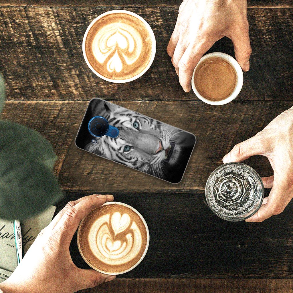 Omdat de Witte Tijger zo bijzonder is, zijn wij bereid deze voor zeer lage kosten op een tpu case te zetten. Dit kunnen we zo goedkoop doen omdat we het drukwerk in eigen beheer doen. Witte tijgers leefden lange tijd in de bossen van India, Bangladesh, Nepal, Bhutan en China en kunnen wel 257 kilo wegen. Dit zwaargewicht kunnen we bedrukken op verschillende soorten hoesjes, zoals deze tpu cases. Deze Nokia 5.4 TPU Hoesje kan exclusief in het bezit van jou komen. Zeker als je er zelf nog unieke teksten en/of beelden aan toevoegt. Het tpu hoesje is zeer flexibel en wordt alleen aan de bovenzijde bedrukt. De randen van dit flexibele hoesje blijven doorzichtig. Tegenwoordig zijn witte tijgers alleen in gevangenschap te bewonderen. Jij zorgt voor een goede bescherming van je smartphone met dit design hoesje met witte tijger.