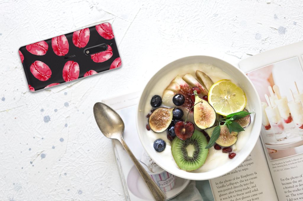 Dit tpu hoesje met Pink Macarons is een zeer opvallende bescherming voor jouw smartphone. Macarons zijn Franse koekjes: kleine, rond en luchtig. Ze worden in veel verschillende smaken gemaakt, herkenbaar aan de verschillende kleuren zoals chocolade (donkerbruin), mokka (middenbruin), kersen (rood), pistache (groen), aardbei (roze), framboos (karmijn). Deze kleuren kun je niet allemaal zien op dit fraaie design hoesje met roze macarons. Heb je altijd al een Nokia 5 Siliconen Case willen hebben met roze macarons? Grijp dan nu je kans. Deze case heeft zeer veel goede eigenschappen, zoals elastisch vermogen, flexibiliteit en schokbestendigheid. Dit design hoesje met roze macarons wordt aan de bovenkant bedrukt, de zijkanten blijven doorzichtig. De case heeft opstaande randen aan de voorzijde en beschermt samen met een screenprotector jouw telefoon perfect. De case heeft ook een handige standaard.
