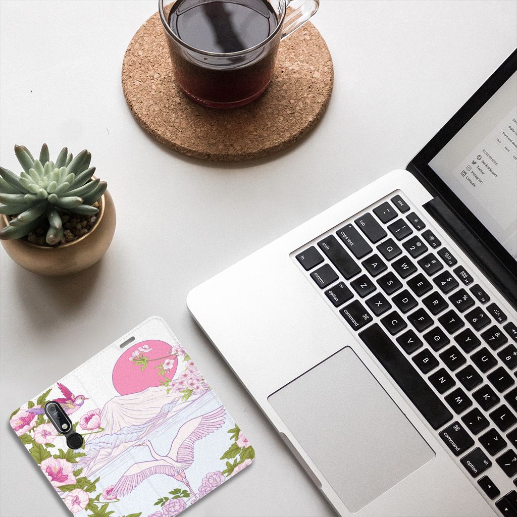 Met deze kleurrijke Nokia 7.1 (2018) Hoesje maken met verschillende paarse vogels blijft jouw toestel in nieuwstaat. De paarse vogels maken het stand hoesje zeer bijzonder. Het hoesje met design Bird Standing in roze en paarse kleuren is een zeer opvallende bescherming voor je telefoon. Het kleurrijke stand hoesje met opvallende vogels beschermt jouw telefoon aan alle zijden en beschikt over een opbergvakje voor een pasje of briefgeld. De roze met paarse case sluit perfect af met de magneet aan de binnenzijde. De houder aan de binnenzijde van het schitterende stand hoesje is van TPU. Dit is ook nog eens zeer flexibel materiaal. Het pu leer aan de buitenkant oogt zeer chique. Kijk voor andere dieren op een design hoesje binnen deze fraaie collectie. Ook kun je zelf een hoesje ontwerpen met je favoriete dier.