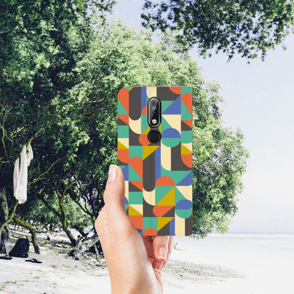 Voor de mensen die een beetje artistiek zijn, is er dit design hoesje met kleuren in een soort van Funky Retro stijl. Je krijgt er bijna een beetje een nostalgisch gevoel bij. De opdruk op dit design hoesje gaat nooit verloren en gaat dus net zo lang mee als dit gave patroon. De print wordt in ons eigen magazijn bedrukt, met zeer duurzame inkt. De case heeft voldoende uitsparingen, dus als je jouw Nokia 7.1 (2018) hebt beloond met dit hoesje ga je een beetje terug in de tijd. Je hoeft het de telefoon nooit uit dit artistieke design hoesje te halen. Het unieke design, door B2C Telecom ontworpen, staat op een Hoesje met Magneet. Deze case beschermt jouw telefoon aan alle kanten en beschikt over een 1 opbergvakje en een speciale standaard. Het hoesje wordt afgesloten met een magneet aan de binnenzijde. De houder aan de binnenzijde is van TPU.