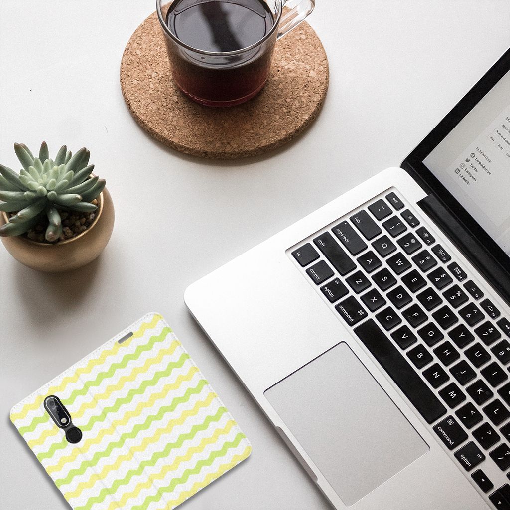 Dit Waves Yellow design hoesje met licht groene en gele golven is speciaal ontworpen voor jouw telefoon. We hebben een vleugje lichtgeel toegevoegd, zodat de case er een beetje spannender en leuker uitziet. Dit licht groene hoesje met licht groene golven ziet er oogstrelend uit. Het wordt in ons eigen magazijn bedrukt, in zeer goede kwaliteit inkt. Wij kunnen dus een zeer duurzaam hoesje met licht groene golven garanderen. Dit hele mooie Nokia 7.1 (2018) Hoesje met Magneet heeft vele extra’s. Is dit licht groene design hoesje je op het lijf geschreven? Grijp dan nu je kans. Deze stand case met licht groene golven beschermt jouw telefoon aan alle kanten en beschikt over een 1 opbergvakje en een speciale standaard. Het licht groene hoesje wordt afgesloten met een magneet aan de binnenzijde. De houder aan de binnenzijde is van het flexibele TPU. Alle zijden van de stand case worden bedrukt.