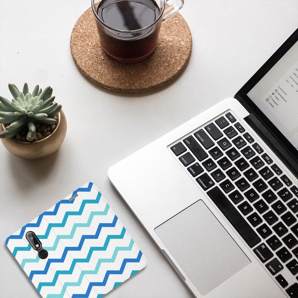 Dit zigzag blauwe design hoesje is speciaal ontworpen voor jou. We hebben bewust verschillende stijlen blauw gebruikt, zodat er voldoende sprake is van variatie. Dit blauwwitte Hoesje met Magneet ziet er super strak uit. Dat kan ook niet anders, als je weet dat onze zeer talentvolle designer er hoogstpersoonlijk voor verantwoordelijk is. Hij schudt wekelijks nieuwe designs uit zijn mouw en dit zigzag blauwe hoesje is een van zijn fraaiste creaties. Een heel dik design hoesje, al zeggen we het zelf. Valt dit blauwwitte design hoesje goed bij jou? Bestel het dan vandaag nog en je hebt het morgen in huis. Het design staat op een stand case. Deze case beschermt jouw Nokia 7.1 (2018) aan alle kanten en beschikt over een 1 opbergvakje en een speciale standaard. Het hoesje wordt afgesloten met een magneet aan de binnenzijde. De houder aan de binnenzijde is van TPU. Alle zijden van de stand case worden bedrukt.