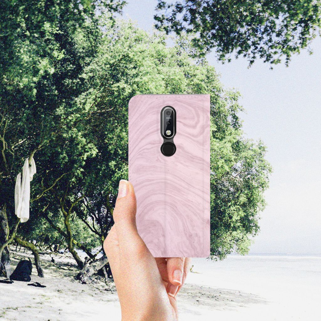Dit design hoesje met Marble Pink is de ultieme bescherming voor jouw kostbare telefoon. Marmer is een zeer gewild bouwmateriaal, onder meer vanwege zijn prachtige lichtval en vastheid. Wij weten dat dit hoesje met roze marmer ook zeer gewild is. Dit hele mooie Nokia 7.1 (2018) Standcase is een fantastische beloning voor jou en je smartphone. Naast het roze marmer zijn er nog diverse andere soorten in verschillende kleuren. Deze stand case met marmer in roze wordt bedrukt op alle zijden. De case beschikt over een vakje voor een pasje en toebehoren en een magnetische sluiting aan de binnenzijde. Verder heeft de case in roze marmer een houder van TPU. Onze designer heeft zich uitgeleefd met dit mooie hoesje. Het resultaat zie je terug in deze stand case met roze marmer, dat de ideale bescherming is voor jouw smartphone. Marmer kent verschillende kleuren, variërend van grijs, tot roze en wit. Des tot mooi dat wij voor variatie hebben gekozen door een hoesje met roze marmer aan de bieden.