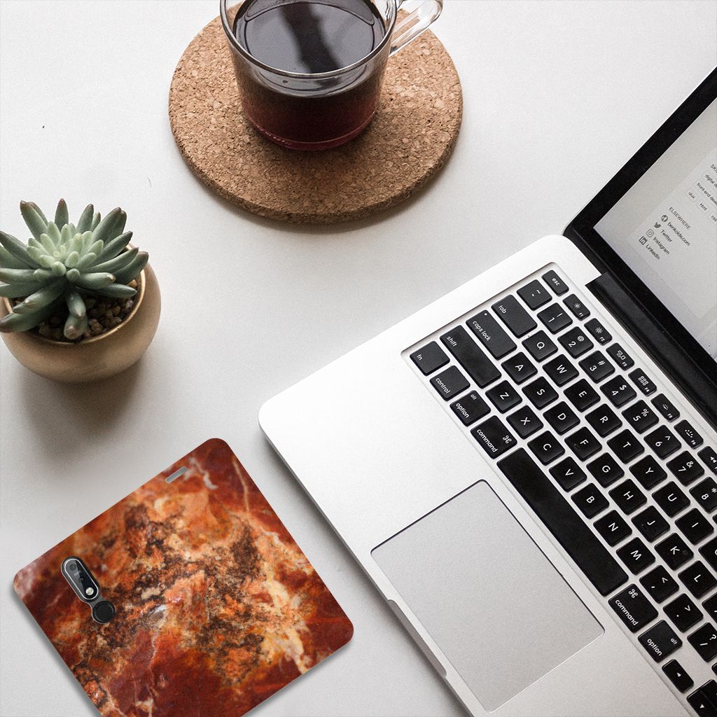 Dit design hoesje met Marmer Bruin is voor de artistieke personen onder ons. De Grieken en Romeinen wisten het al te waarderen door het als bouw- en bekledingsmateriaal toe te passen. Naast het witte Carrara marmer met haar zacht grijze geaderde belijning zijn de diverse soorten in een ruim kleurenpallet te krijgen. We hebben verschillende kleuren op design hoesjes gezet, zoals in dit geval bruin marmer. Dit is een Nokia 7.1 (2018) Standcase met marmer in bruine kleur. Het marmer wordt bedrukt op alle zijden van een stand case, die beschikt over 1 vakje voor een pasje en een magnetische sluiting aan de binnenkant. Verder heeft de case een houder van TPU. De rijkheid aan kleuren en varianties in afwerking geeft ontwerpers de vrijheid om met marmer hele mooie architectonische projecten te realiseren. Wij hebben onze ontwerper ook veel vrijheid gegeven. Het resultaat zie je terug in deze stand case met bruin marmer, dat de ideale bescherming voor jouw smartphone biedt.