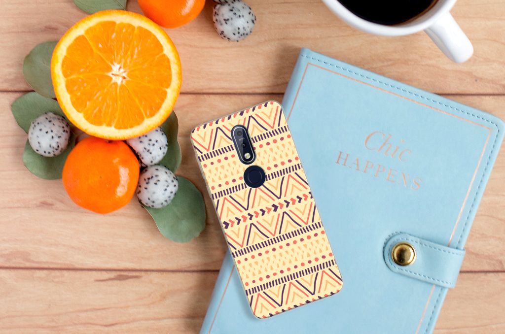 De Azteken leefden tussen 1200 en 1521 in het huidige Mexico. De mooie Aztec-patronen waar zij bekend om stonden, zien we nu nog op kleding, stoffen en tassen. Wie had toen kunnen bedenken dat we diezelfde prints honderden jaren later zelfs op een telefoonhoesje zouden vinden? Dit kleurrijke Aztec Yellow-hoesje is perfect voor iedereen die een stukje geschiedenis bij zich wil dragen maar ook gewoon een mooi patroon op zijn hoesje wil. Dit vrolijke, kleurrijke ontwerp staat op een TPU bumper voor de Nokia 7.1. TPU is flexibel en onbreekbaar. Zo is je telefoon aan de achterkant en de randen heel goed beschermd. De case is aan de bovenkant bedrukt, de randen blijven transparant.