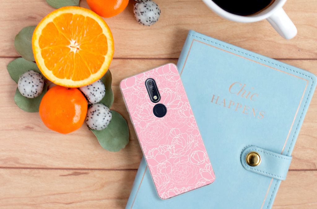 Nokia 7.1 TPU Hoesje Pauw met Bloemen